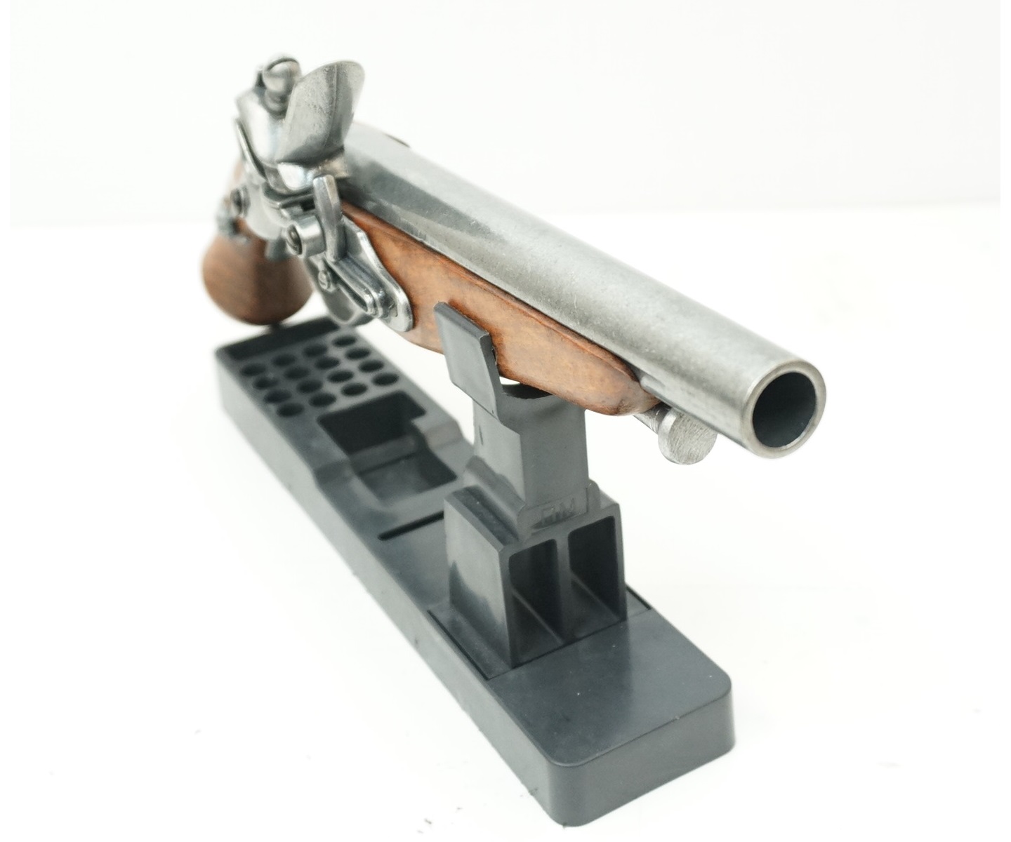 Материал макета – металлический сплав и натуральное дерево. На кремниевом замке имеется гравировка с названием мануфактуры, выпустившей оригинальный пистолет. Вес макета 0,63 кг, длина 35 см. Изделие упаковано в картонную коробку.