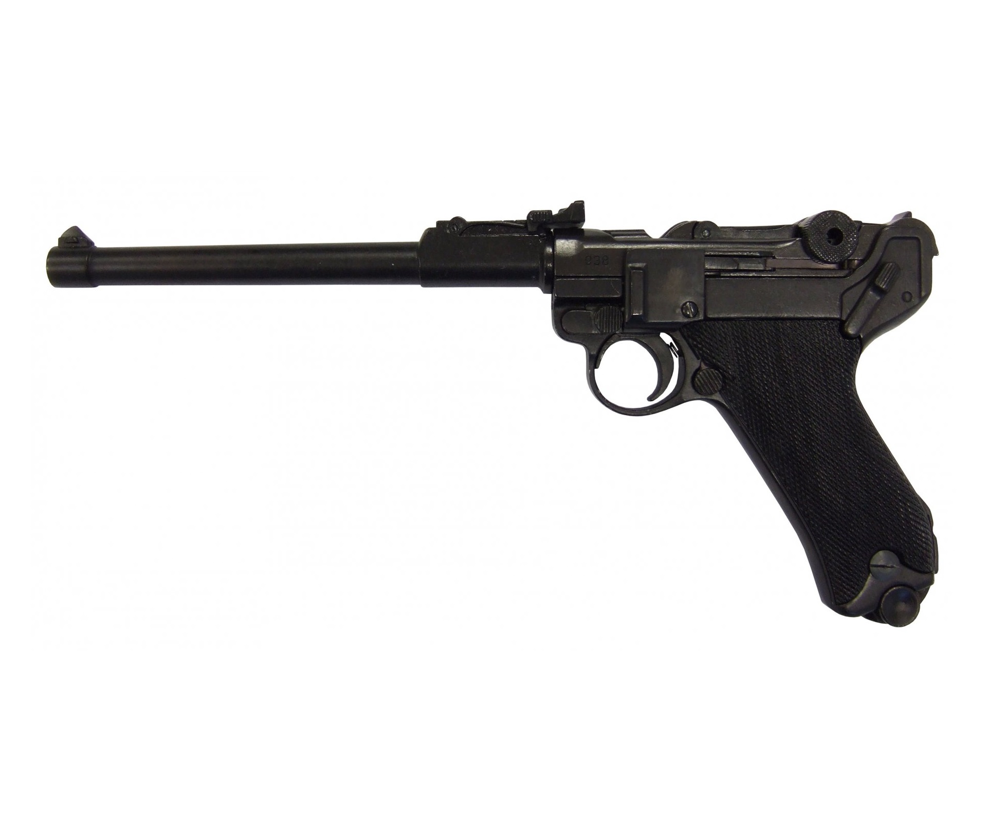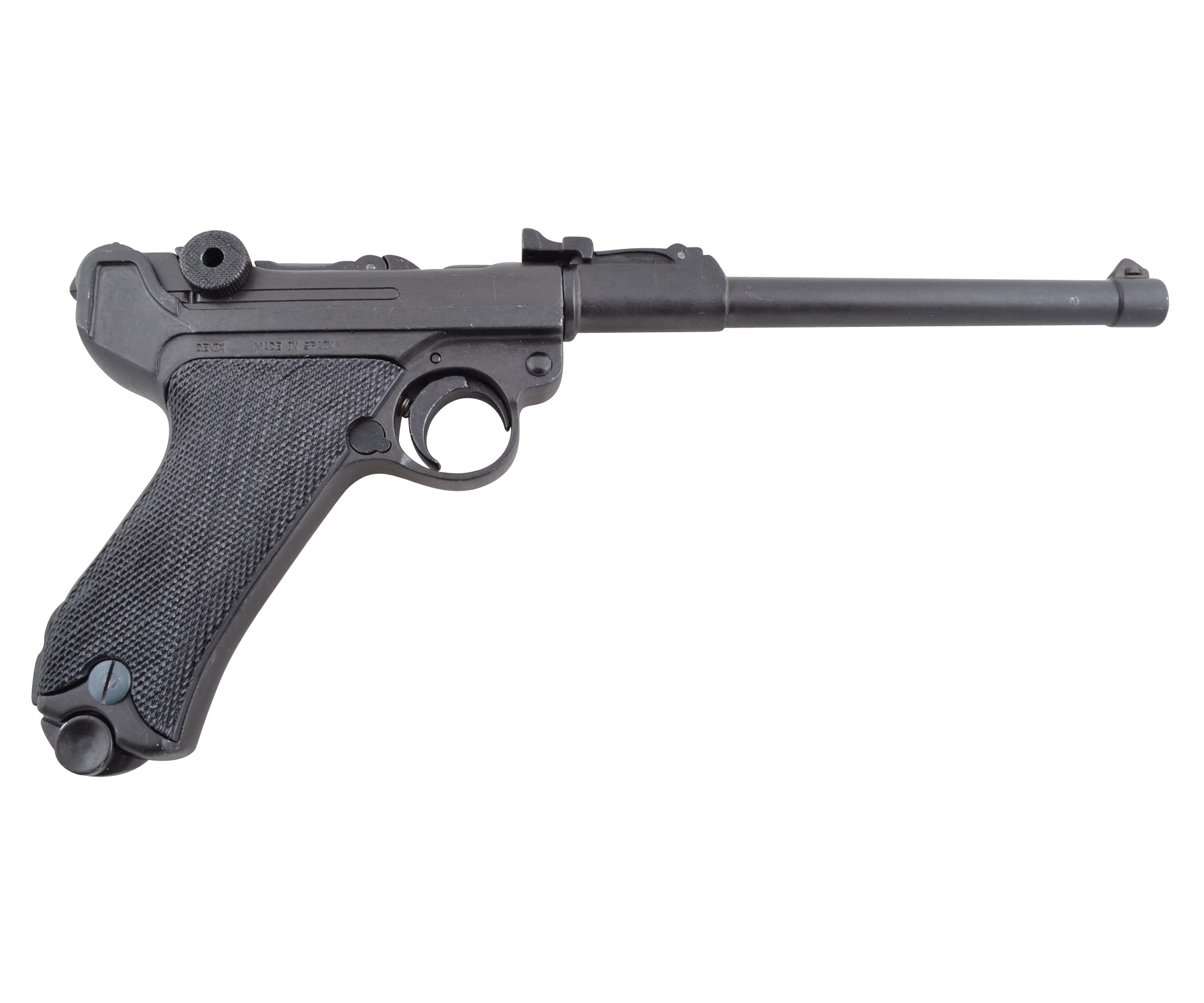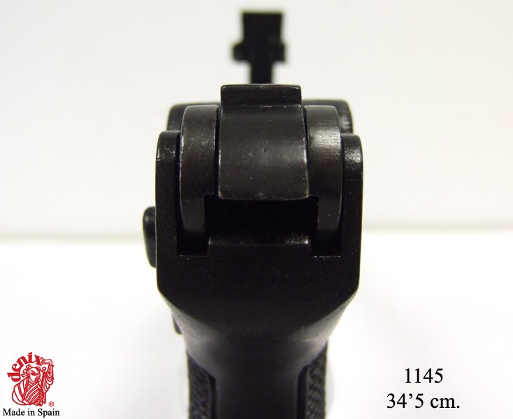 Макет Люгер P08 представляет собой точную как внешне, так и по габаритам и весу копию боевого прототипа, выполненную мастерами испанской компании Denix. Модель имеет подвижный ударно-спусковой механизм, что делает ее еще более реалистичной. Для изготовления данного экземпляра использован специальный металлический сплав на основе цинка, обеспечивающий оружию достаточную прочность и долговечность. На рукоятке револьвера имеется пластиковая накладка с рифленой поверхностью. Кроме клейма, свидетельствующего о стране происхождения макета, других надписей нет.