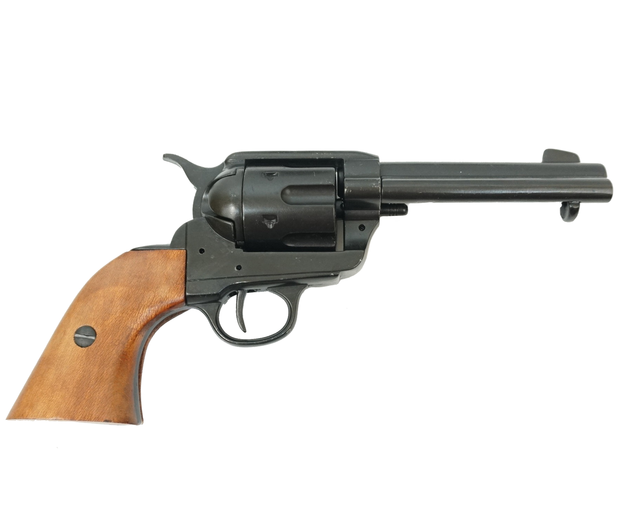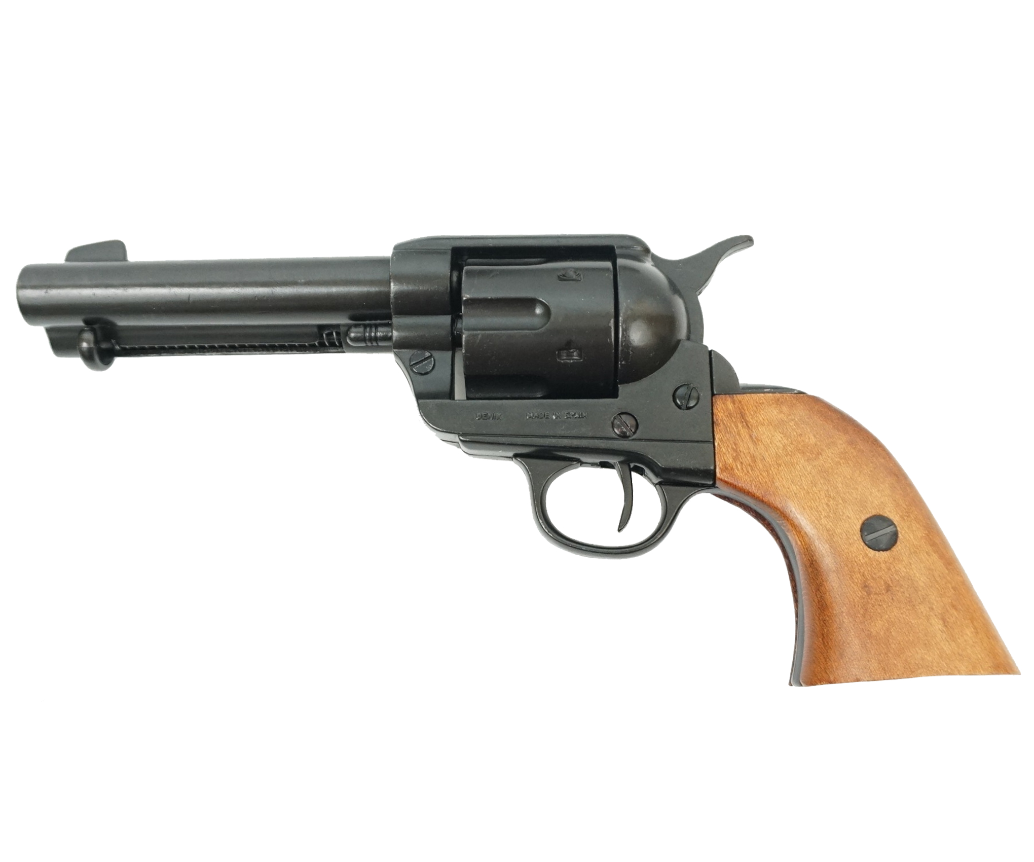 Макет револьвер Кольт Peacemaker 45 калибр, DE-1186-N изготовлен на заводе испанской компании Denix, специализирующейся на производстве сувенирной оружейной продукции. В качестве основного материала в макете применен специальный сплав отличной прочности, рукоять выполнена из натурального дерева.