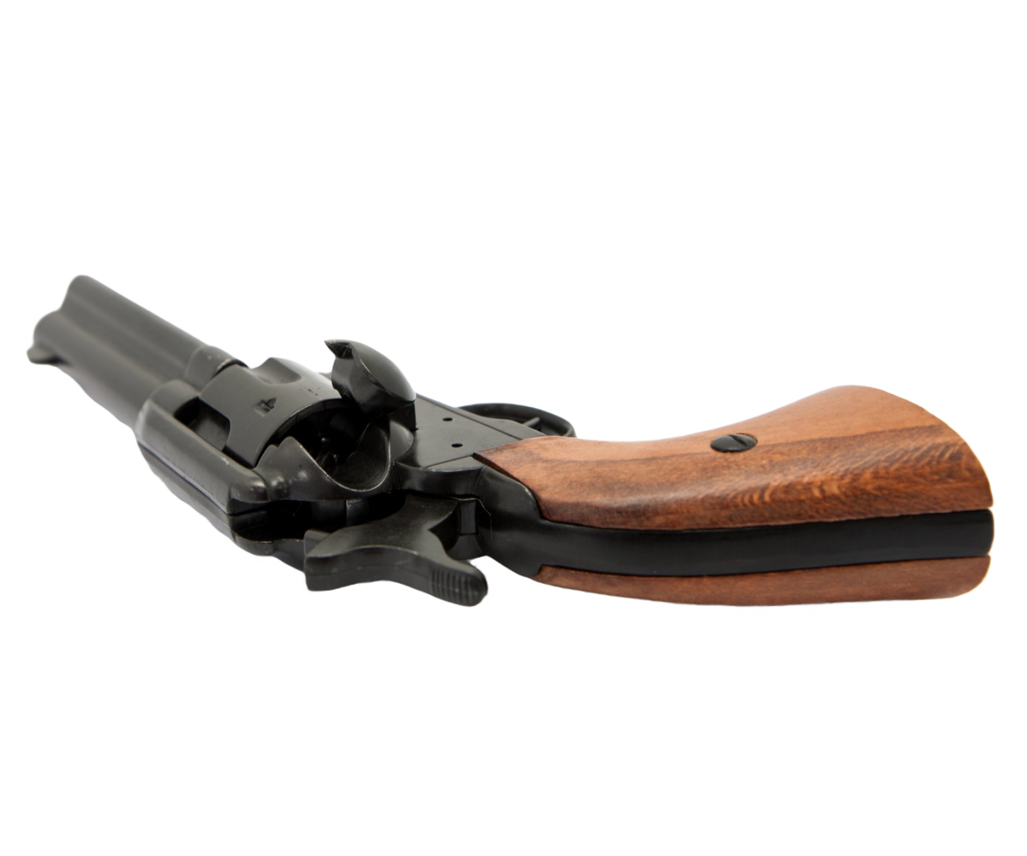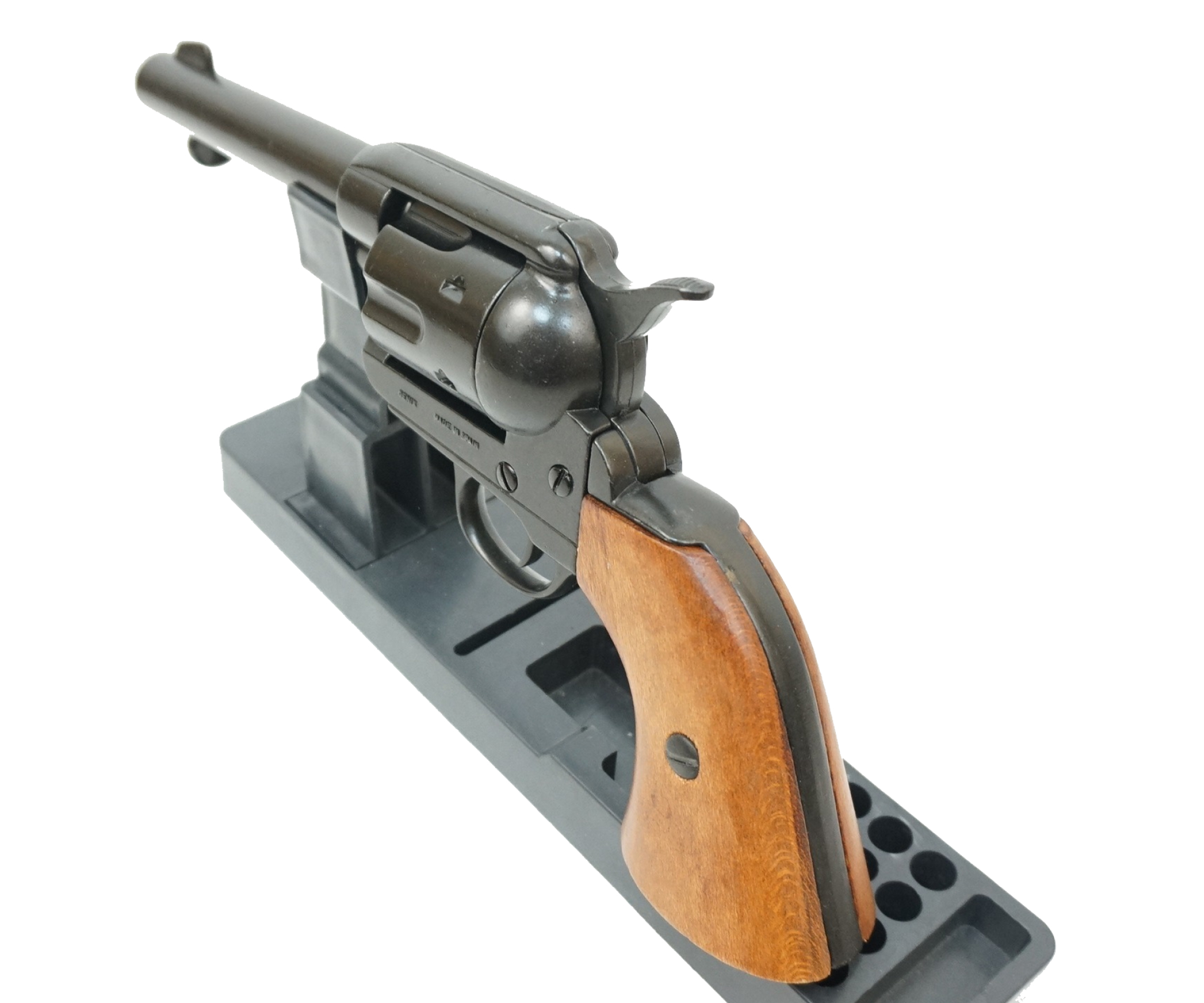 Макет револьвер Кольт Peacemaker 45 калибр – созданная «по образу и подобию» легендарного револьвера копия оружия, запатентованного Кольтом как оружие с вращающимся барабаном. Начиная с 1836 года, когда был выпущена первая партия капсюльных револьверов Кольта (Colt Paterson), и до настоящего времени, было разработано несколько десятков модификаций этого пистолета. Это были и револьверы одинарного действия, и револьверы двойного действия, и пистолеты.
