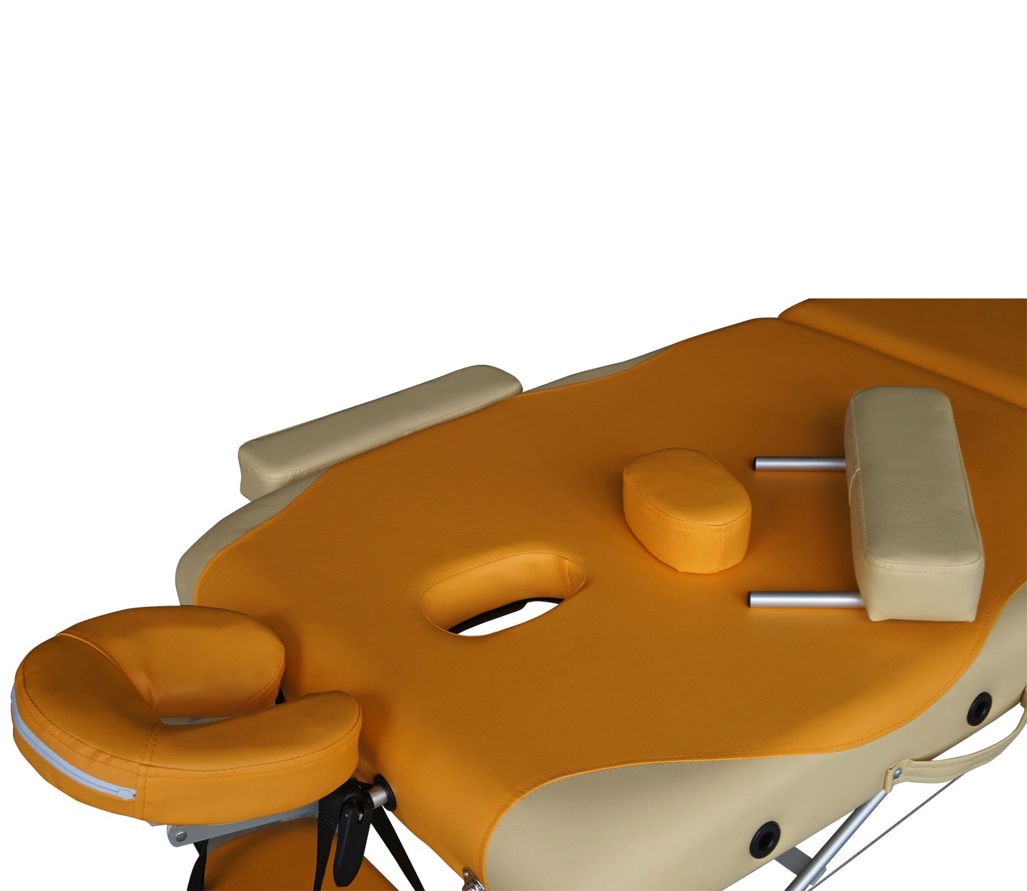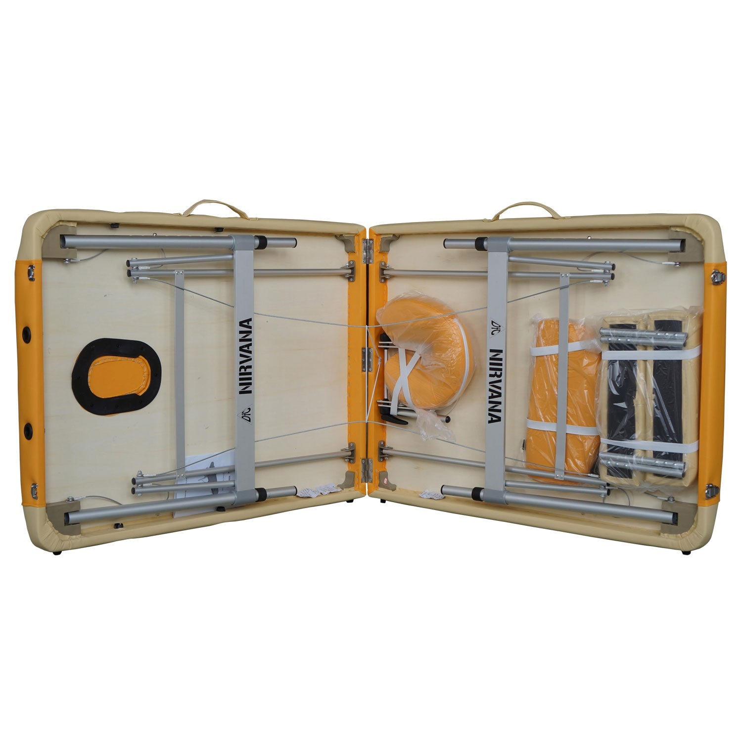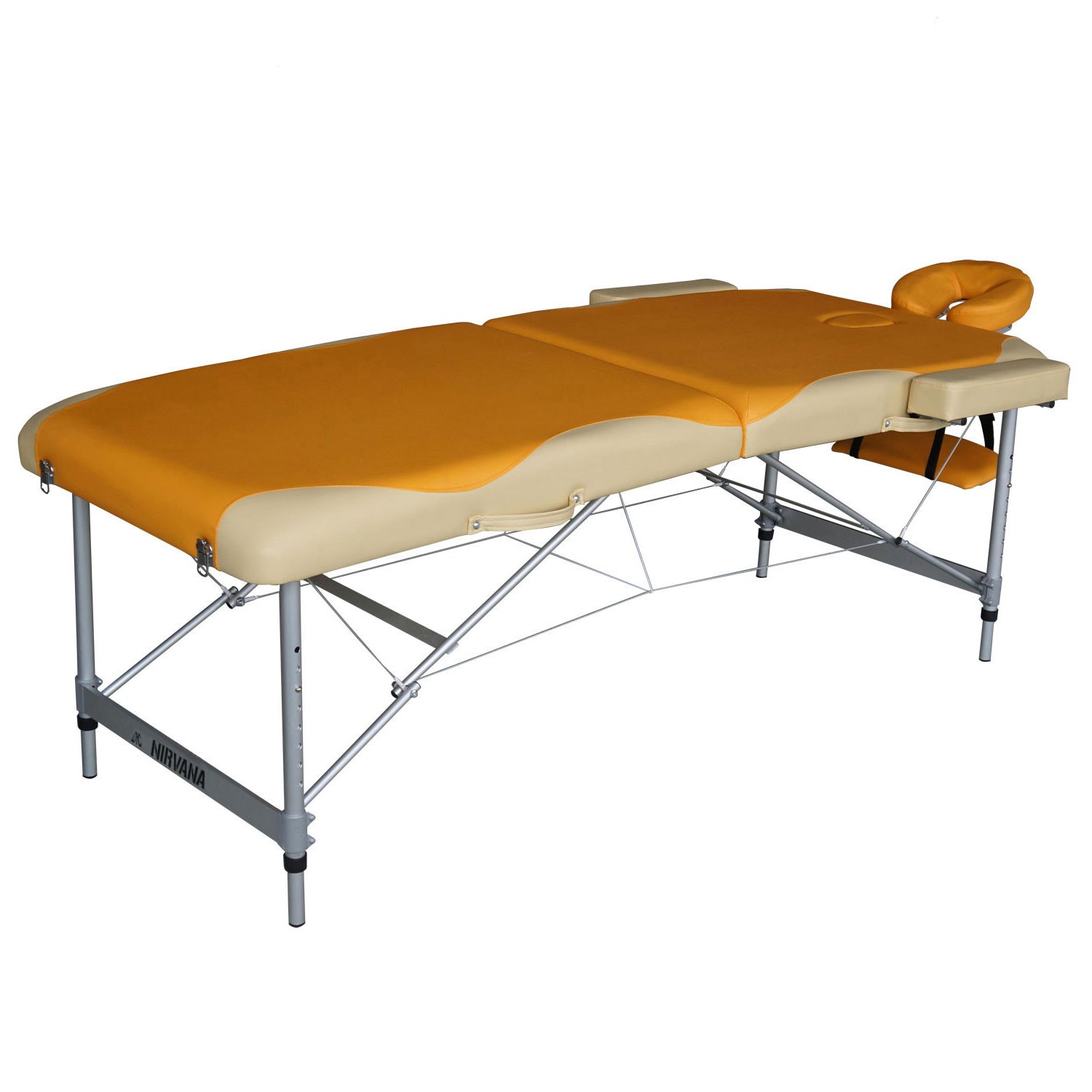 Массажный стол DFC NIRVANA Elegant Premium Складной 2-х секционный переносной массажный стол DFC NIRVANA Elegant Premium изготовлен из высококачественных компонентов. Идеально подходит для домашней эксплуатации. Благодаря применению алюминия в конструкции рамы вес стола существенно облегчен и составляет 13 кг. Имеет складную конструкцию. Удобен для хранения и транспортировки. В комплект входит сумка-чехол для переноски. Материал обивки - искусственная кожа (ПВХ/PVC). В качестве наполнителя применяется поролон толщиной 6 см. Высота стола регулируется в 11-ти положениях в диапазоне от 63 до 84 см. Размер стола - длина 192 см (без подголовника) и ширина 75 см. Максимальная нагрузка на стол составляет 250 кг.