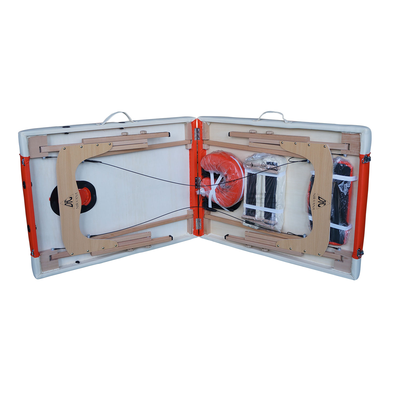 Складной 2-х секционный переносной массажный стол DFC NIRVANA Relax (Оранжево-кремовый). Изготовлен из высококачественных компонентов. Идеально подходит для домашней эксплуатации.
