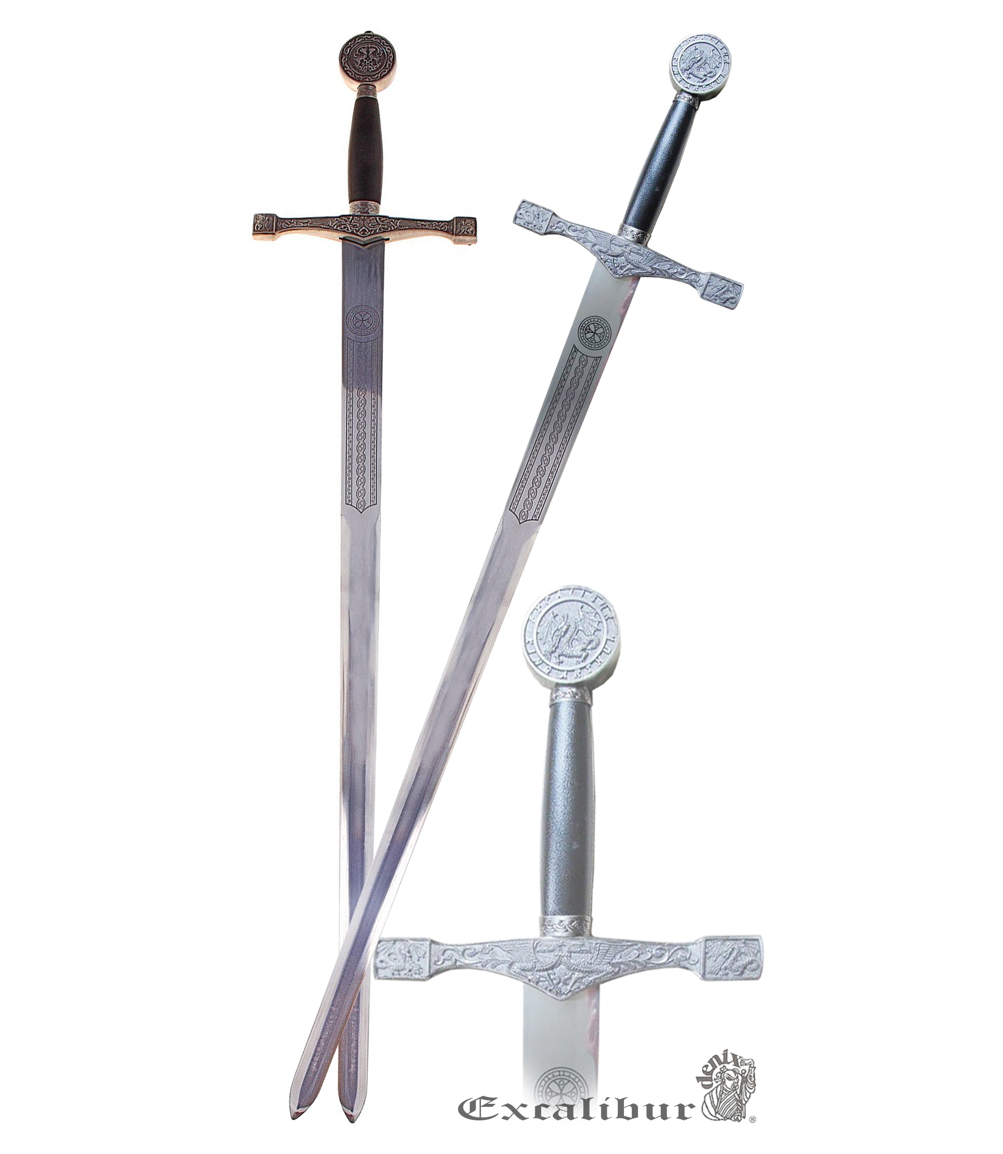 Меч короля Артура от мастеров Denix изготовлен на основании образца средневекового оружия, возможно, принадлежащего легендарному персонажу. По крайней мере, об этом свидетельствует гравировка на устье ножен – с названием меча и именем его владельца. По контуру навершия также выгравировано имя короля Артура. Меч изготовлен из цинкового сплава zamak, с использованием никеля в качестве материала отделки крестовины и навершия. Гарда имеет крестообразную форму, и украшена гравировкой с изображением драконов. Рукоятка меча имеет рифленую поверхность. Ножны изготовлены из пластика, имеют покрытие, напоминающее натуральную кожу. Клинок Эскалибра не подвергнут заточке, однако его вид мало чем отличается от настоящего оружия.