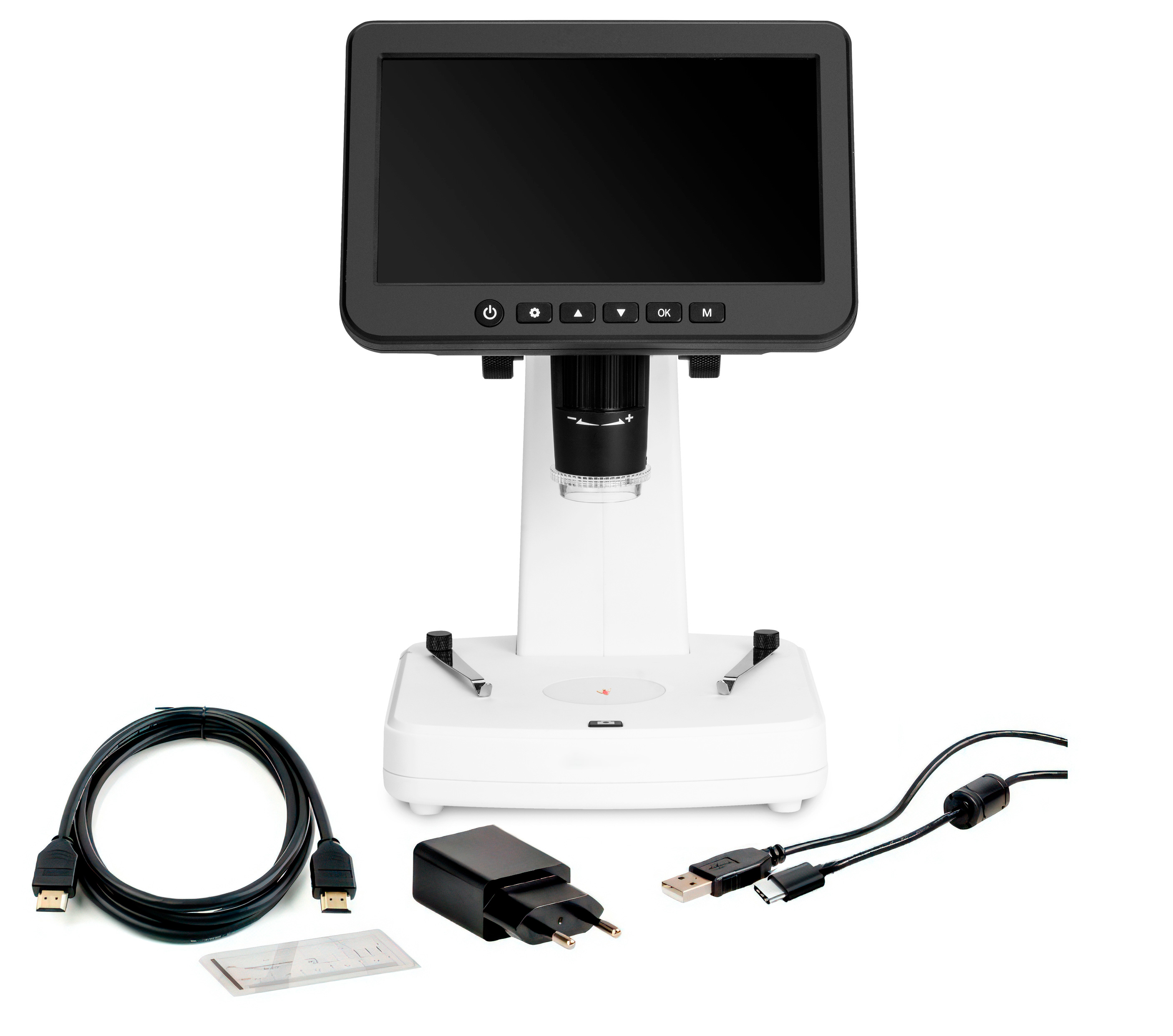 Микроскоп поддерживает два типа подключения к внешним устройствам: USB (для совместной работы с компьютером) и HDMI (для вывода изображения на внешний монитор или телевизор).