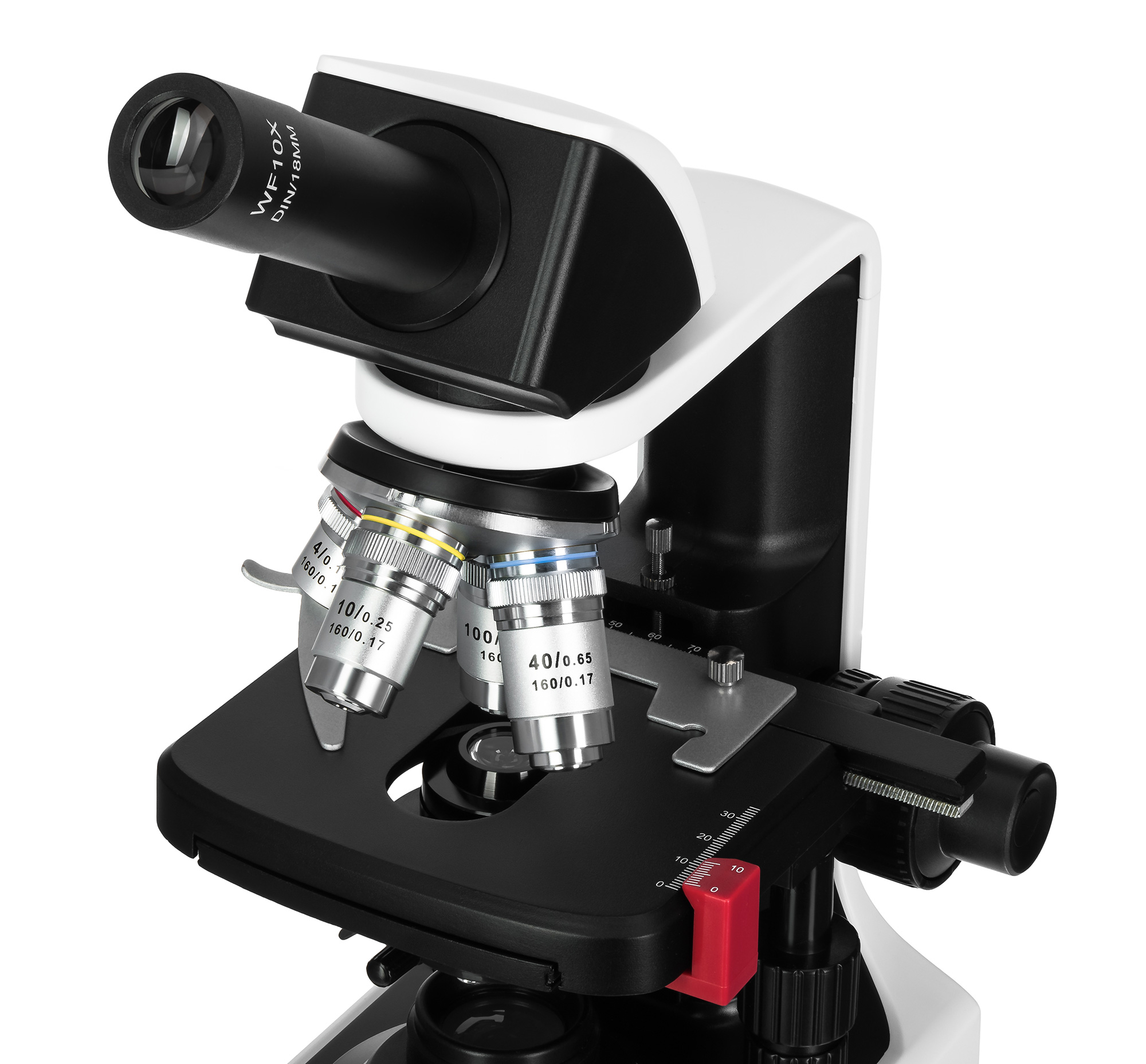 Ахроматические: 4x/0,10; 10x/0,25; 40xs/0,65; 100xs/1,25 (масляный); парфокальная высота 45 мм; для работы с покровным стеклом 0,17 мм