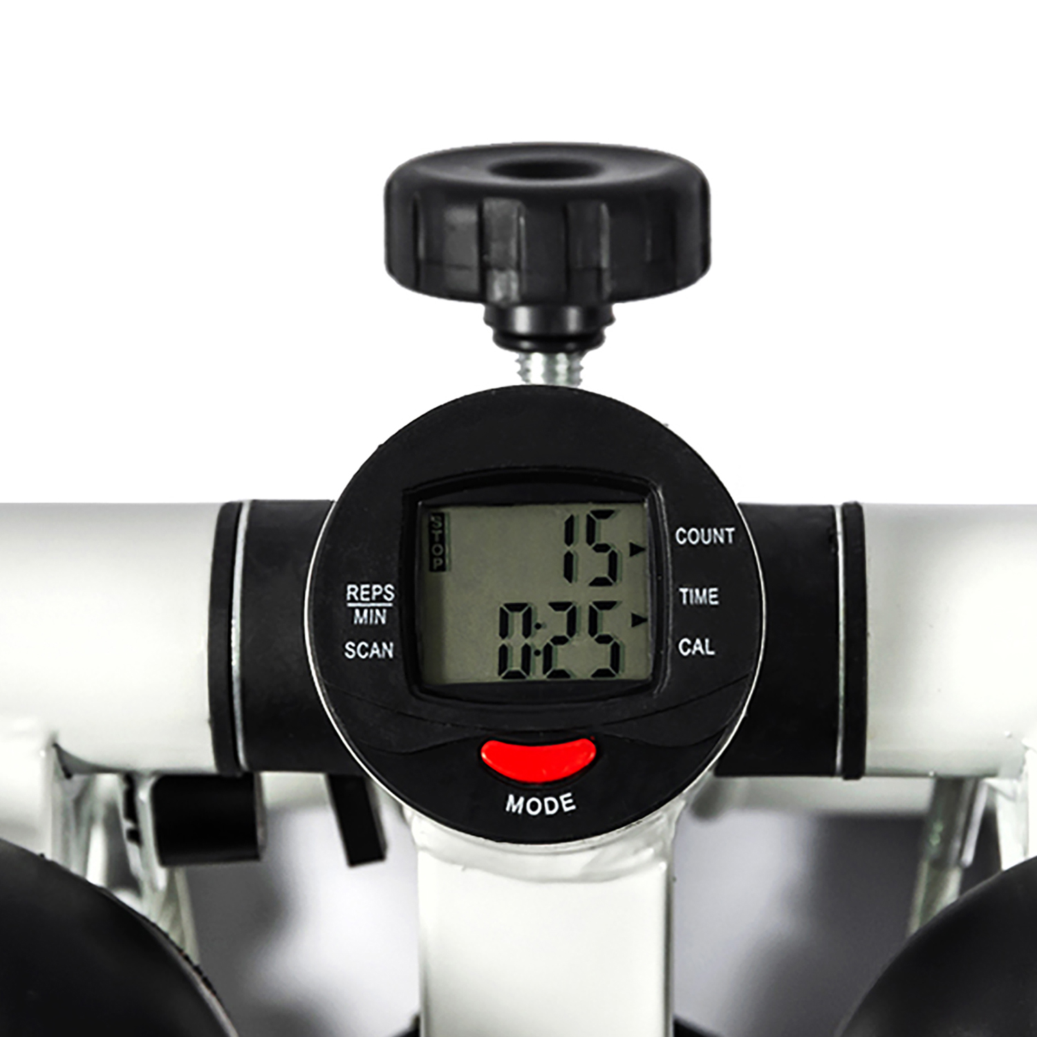 Компьютер с LCD-дисплеем отображает необходимые параметры во время тренировки: время, общее количество шагов за тренировку, шаг/мин, калории, скан
