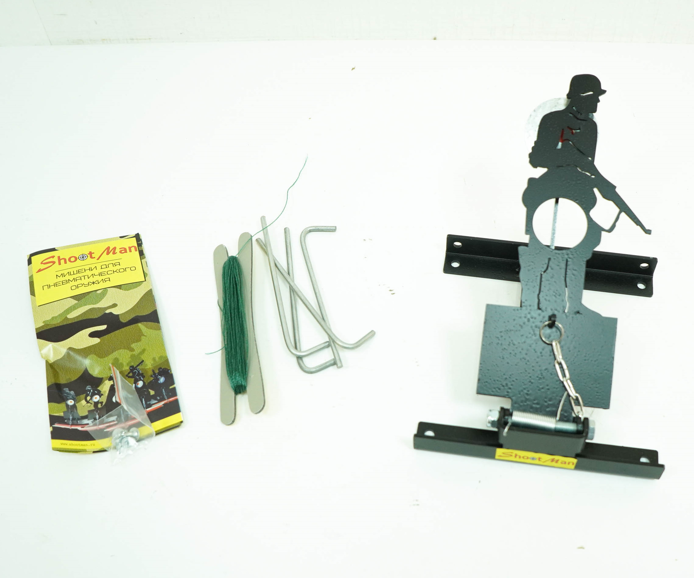 При попадании в яблочко мишени «Солдат» она падает. Просто потяните за веревку и она будет готова для следующего выстрела.