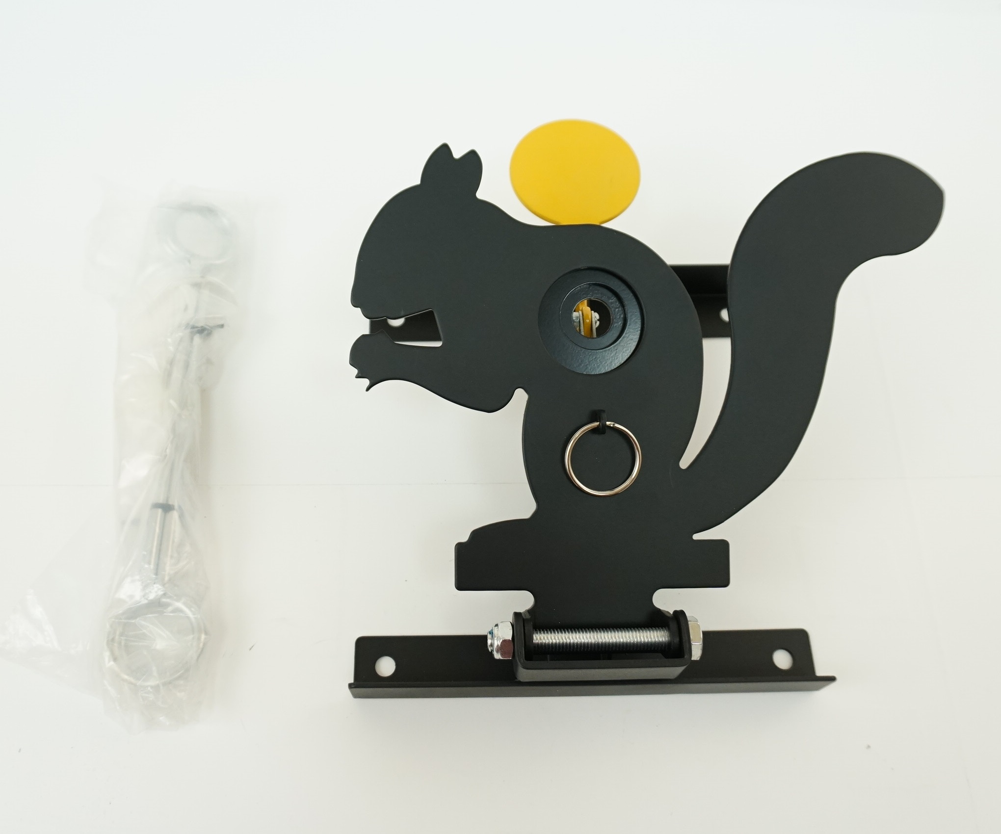 Мишень Gamo TG-4 выполнена из металла. Модель в виде белки предназначена для стрельбы из пневматического оружия. При попадании пули в центр мишени, "зверек" падает. Для удобства стрелка мишень снабжена тросиком, что позволяет поднять мишень в вертикальное положение, не покидая зону пристелки. Мишень предоставляет возможность потренироваться перед настоящей охотой.