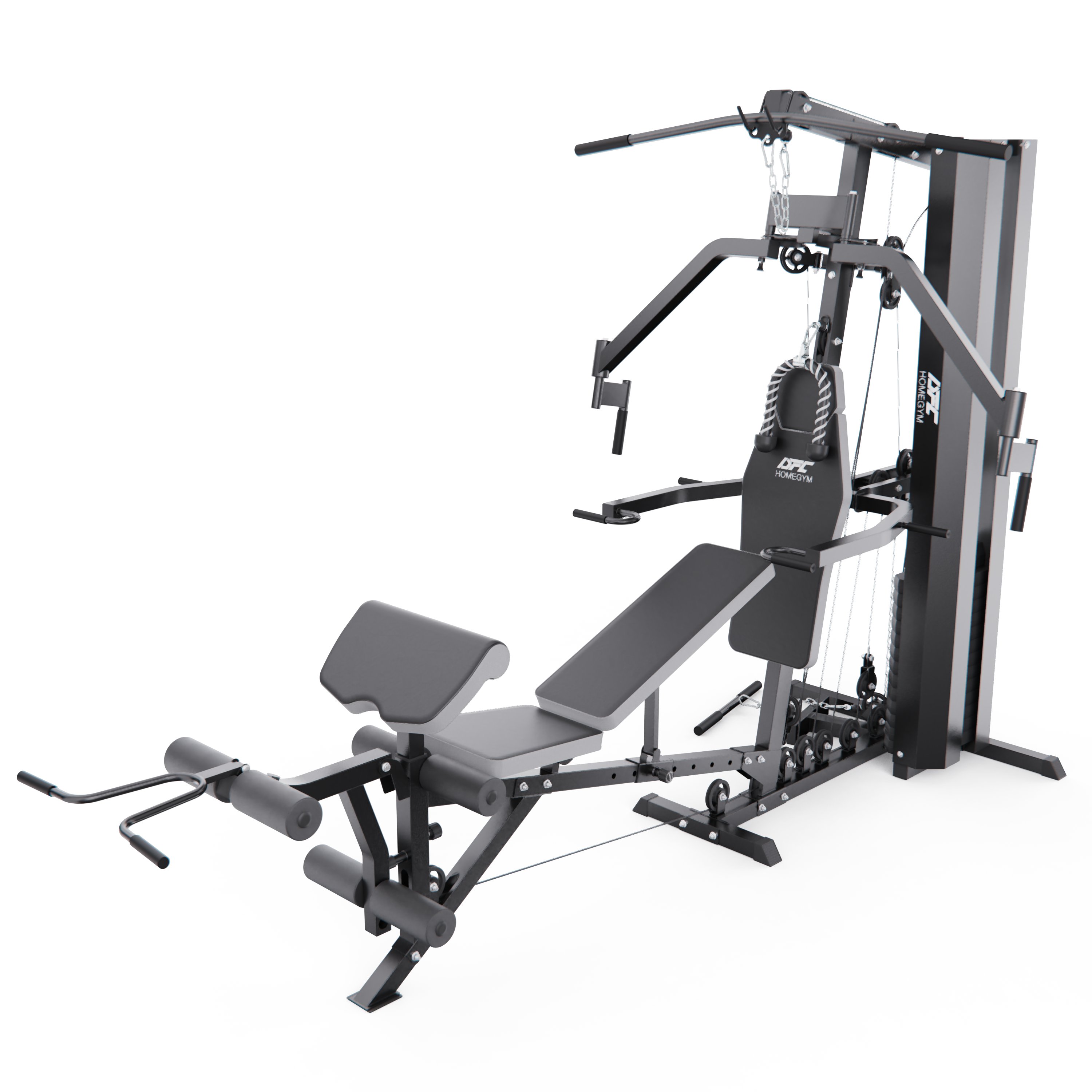 Многофункциональный силовой комплекс DFC D70119 — многофункциональная силовая станция и тренажер для силовых тренировок дома. Модель предназначена для регулярного использования в домашних условиях и позволяет эффективно прорабатывать все основные группы мышц: груди, спины, плеч, рук, ног, а также мышцы пресса и кора.