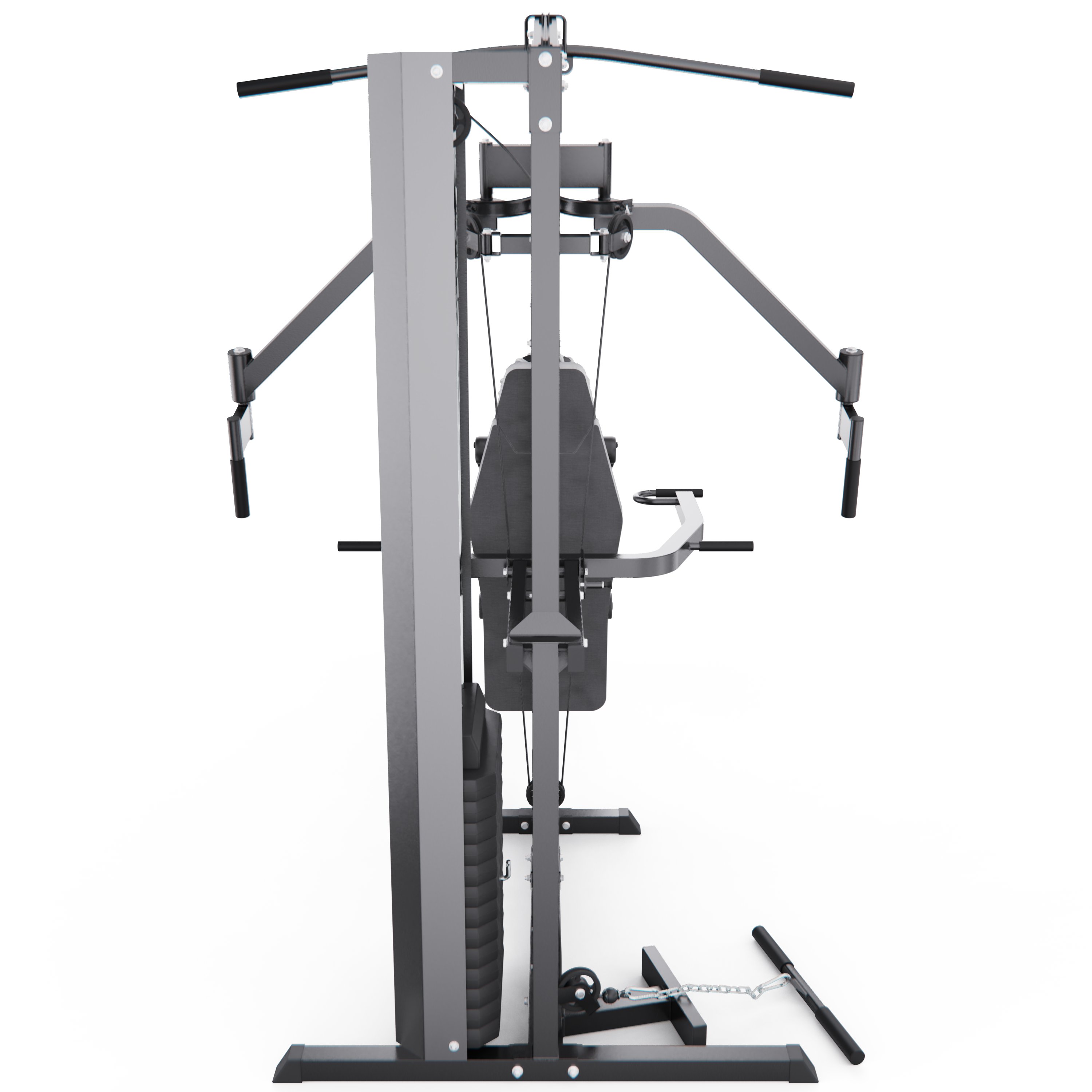 В конструкции предусмотрено 13 свободных блоков и 1 встроенный весовой блок весом 77 кг. Такая система позволяет гибко настраивать нагрузку по уровню физической подготовки — от начинающего до уверенного спортсмена. Силовой комплекс удобно использовать как для набора мышечной массы, так и для поддержания формы.