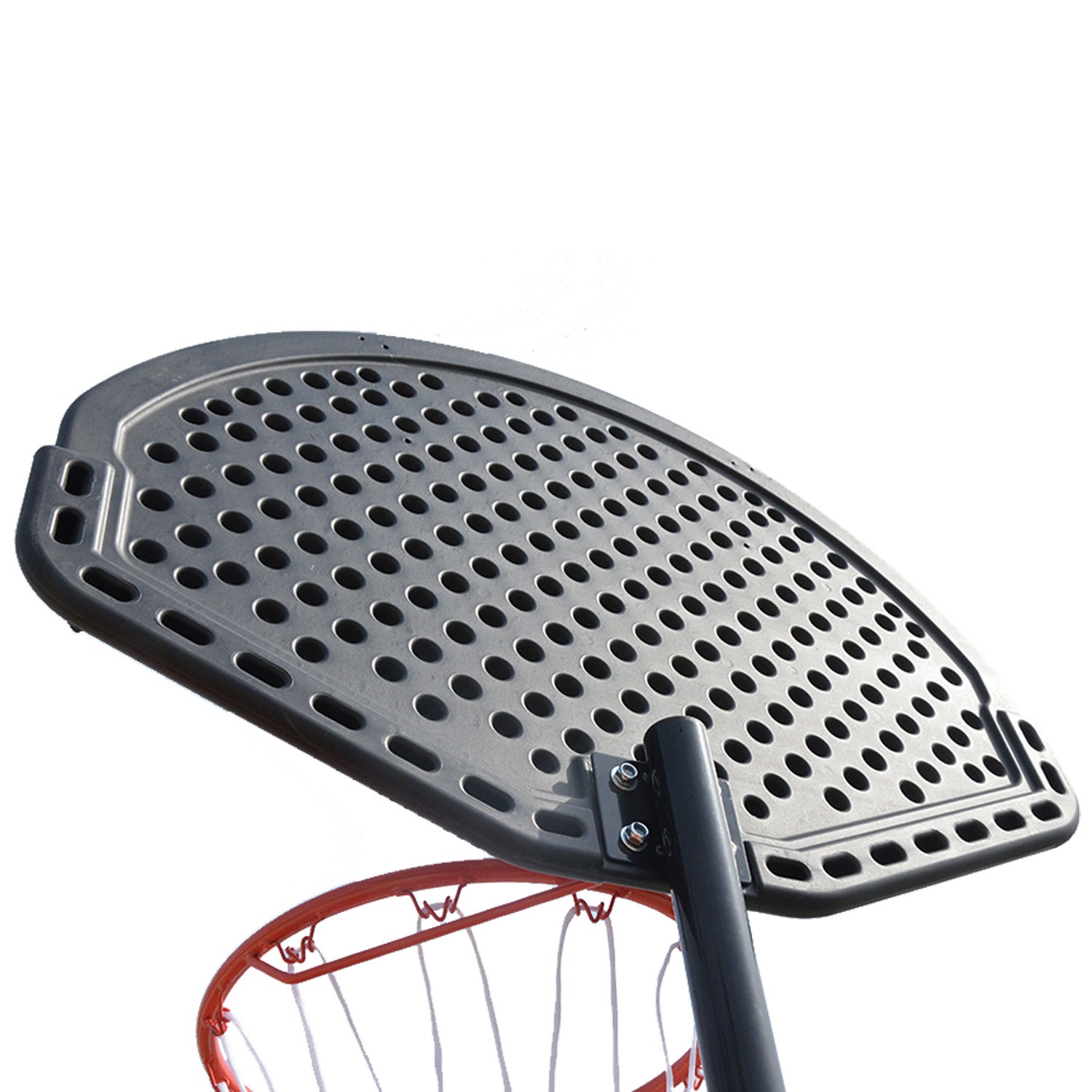 Детская мобильная баскетбольная стойка с щитом из полиэтилена. В основание необходимо залить воду или засыпать песок (50 кг).