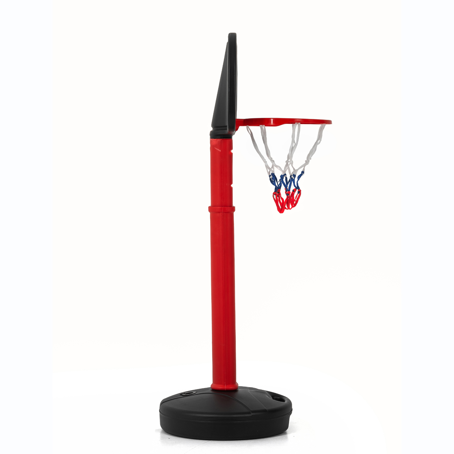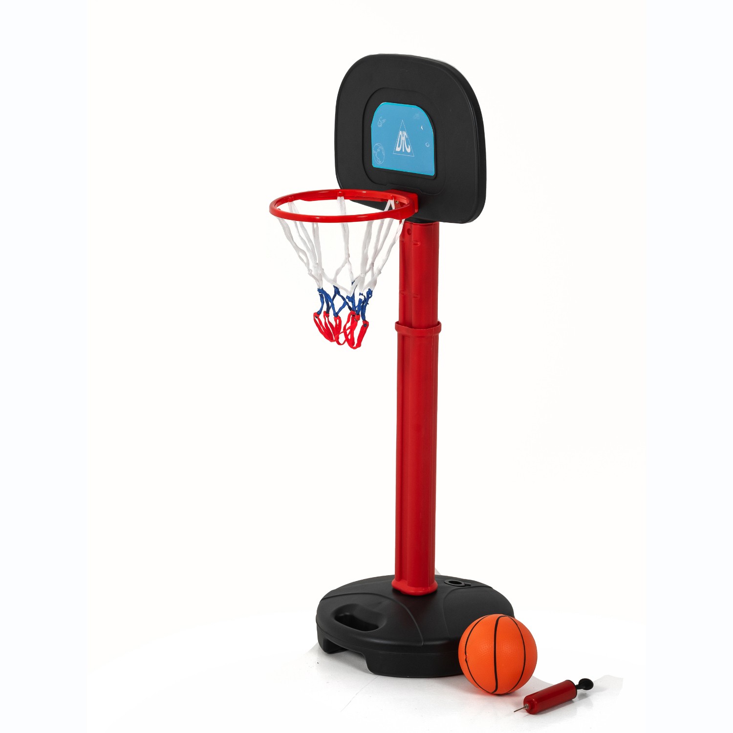 Детская мобильная баскетбольная стойка с щитом из полиэтилена. В основание диаметром 37 см и высотой 7 см необходимо залить воду или засыпать песок (7,5 л, а именно 0,0075 м 3 ).