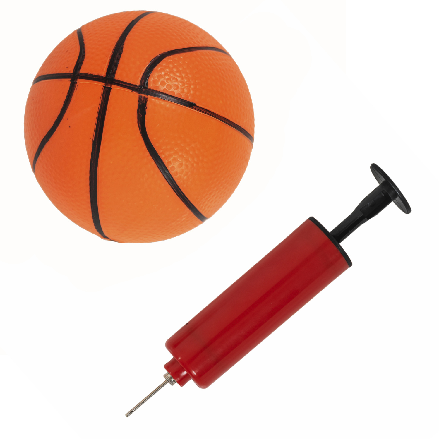 В комплекте со стойкой идет детский баскетбольный мяч для игры и насос.