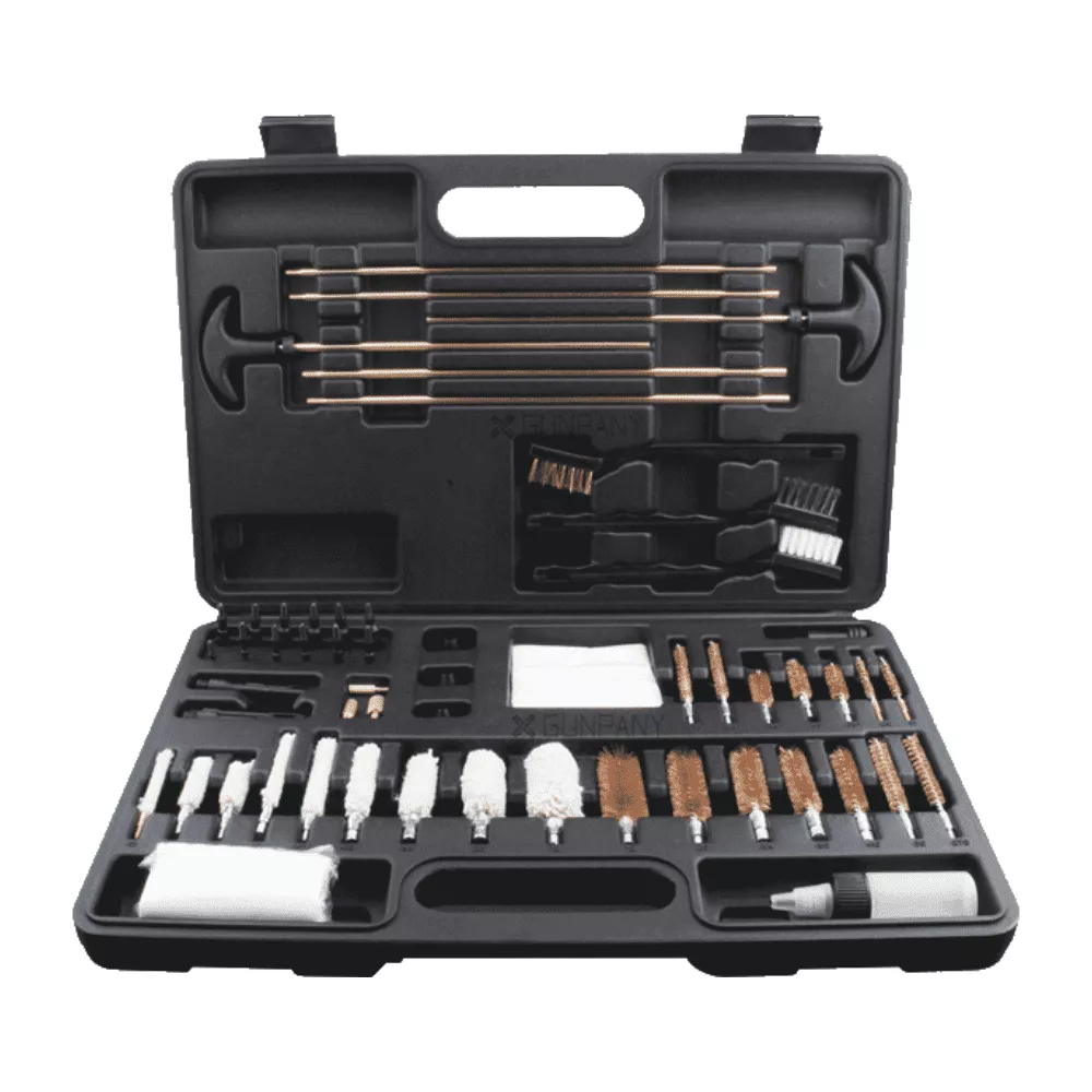GUNPANY на 62 предмета – универсальный набор для комплексной чистки большинства видов ружей, винтовок и пистолетов от инженеров-технологов именитой китайской корпорации Vector Optics. Комплект включает в себя удобный кейс из высокопрочного пластика, внутри которого имеется все необходимое для тщательного обслуживания и бережного ухода за гладкоствольным и нарезным оружием. Благодаря простоте использования, малому весу и стойкости к деформации, набор “Gunpany 62 Pcs Universal Gun Cleaning Kit” станет отличным подспорьем как для начинающего, так и опытного охотника или спортивного стрелка.