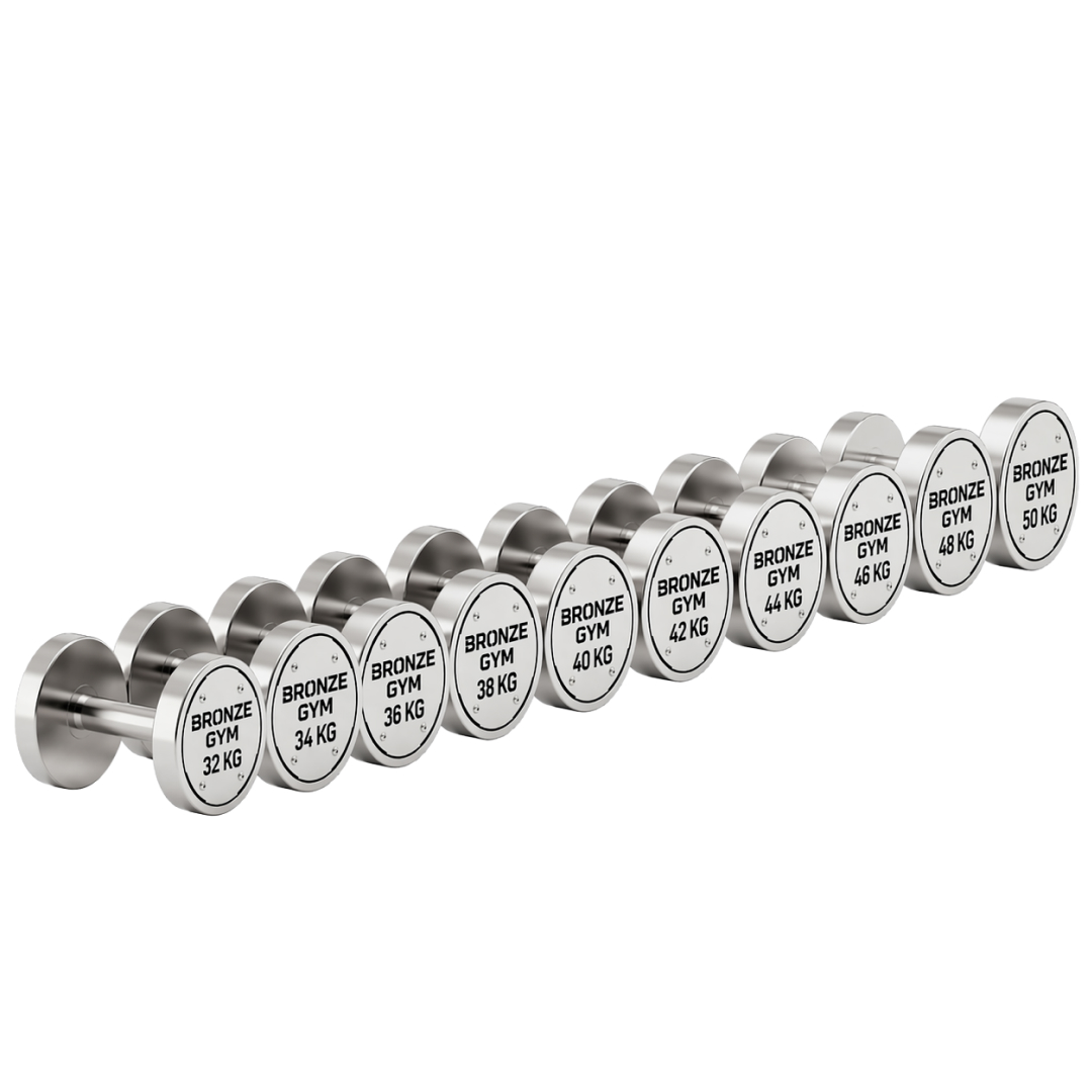 Набор стальных гантелей BRONZE GYM, 32-50 кг - 10 пар, шаг 2 кг