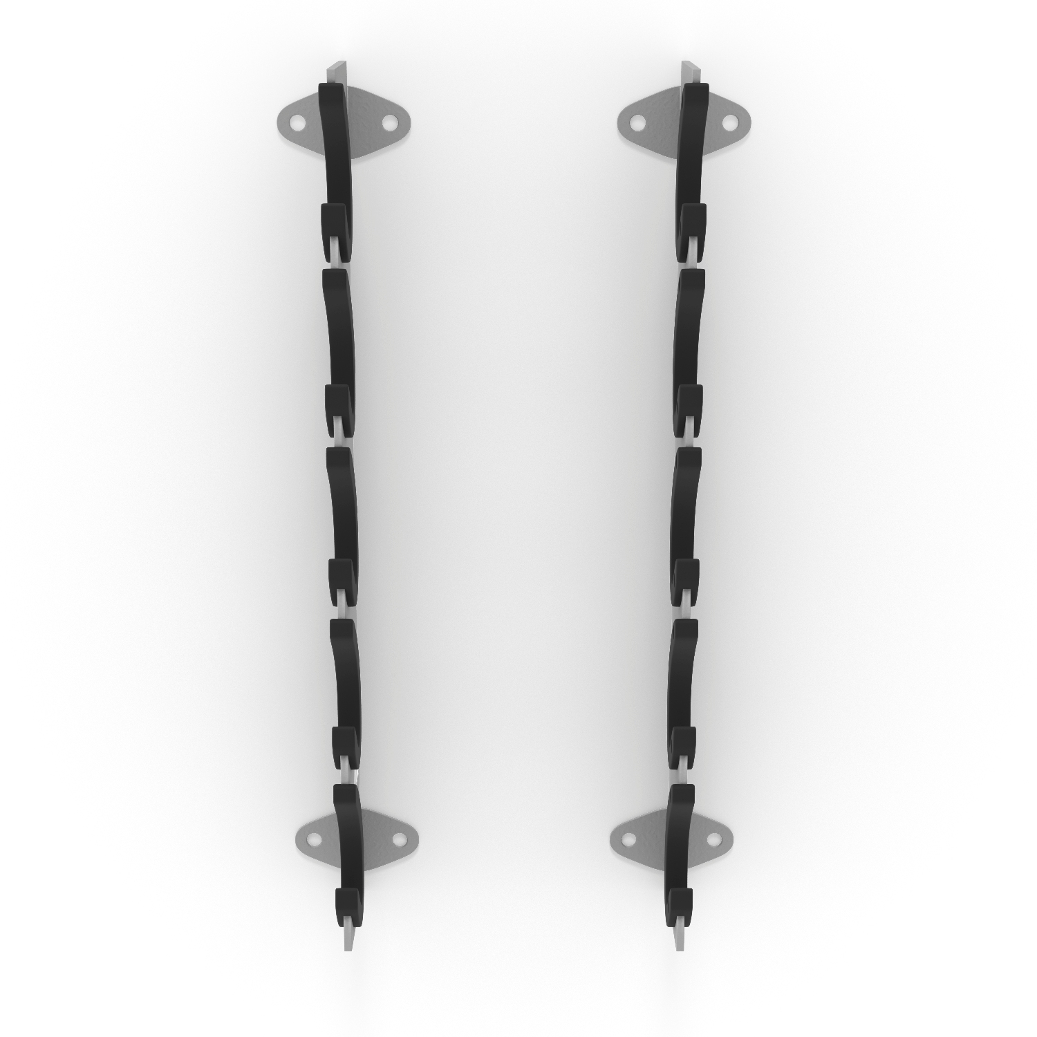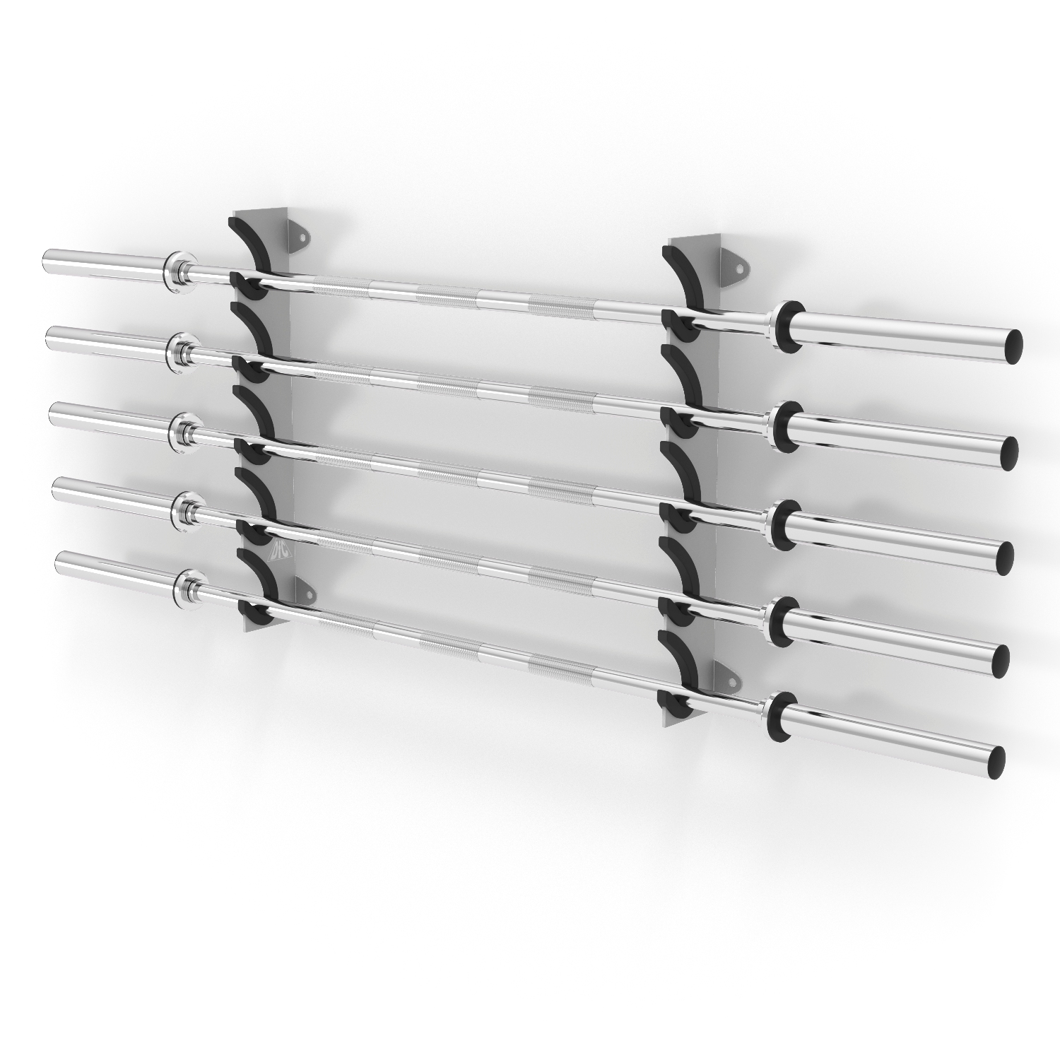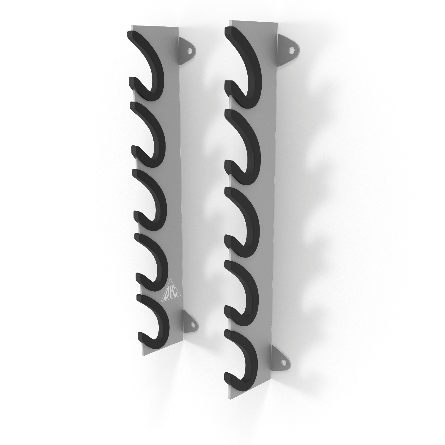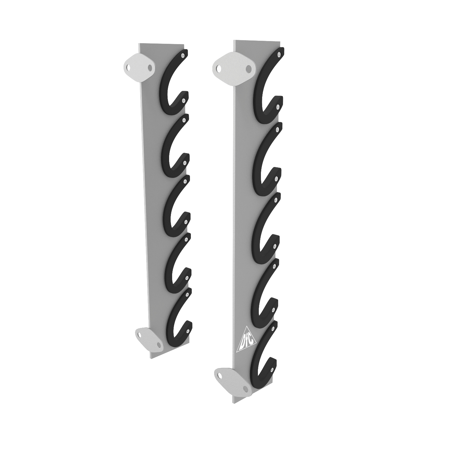 Настенная стойка для хранения грифов DFC D101027 – простой и удобный способ организации спортивных снарядов. Стойки можно закрепить на любом расстоянии. Максимальная нагрузка – до 300 кг. На ней можно хранить до 7 грифов диаметром 30 мм. Держатели крепятся на стену при помощи болтов из стали высокой прочности. Резиновое покрытие на держателях не позволяют грифам выскользнуть и защищают от царапин.