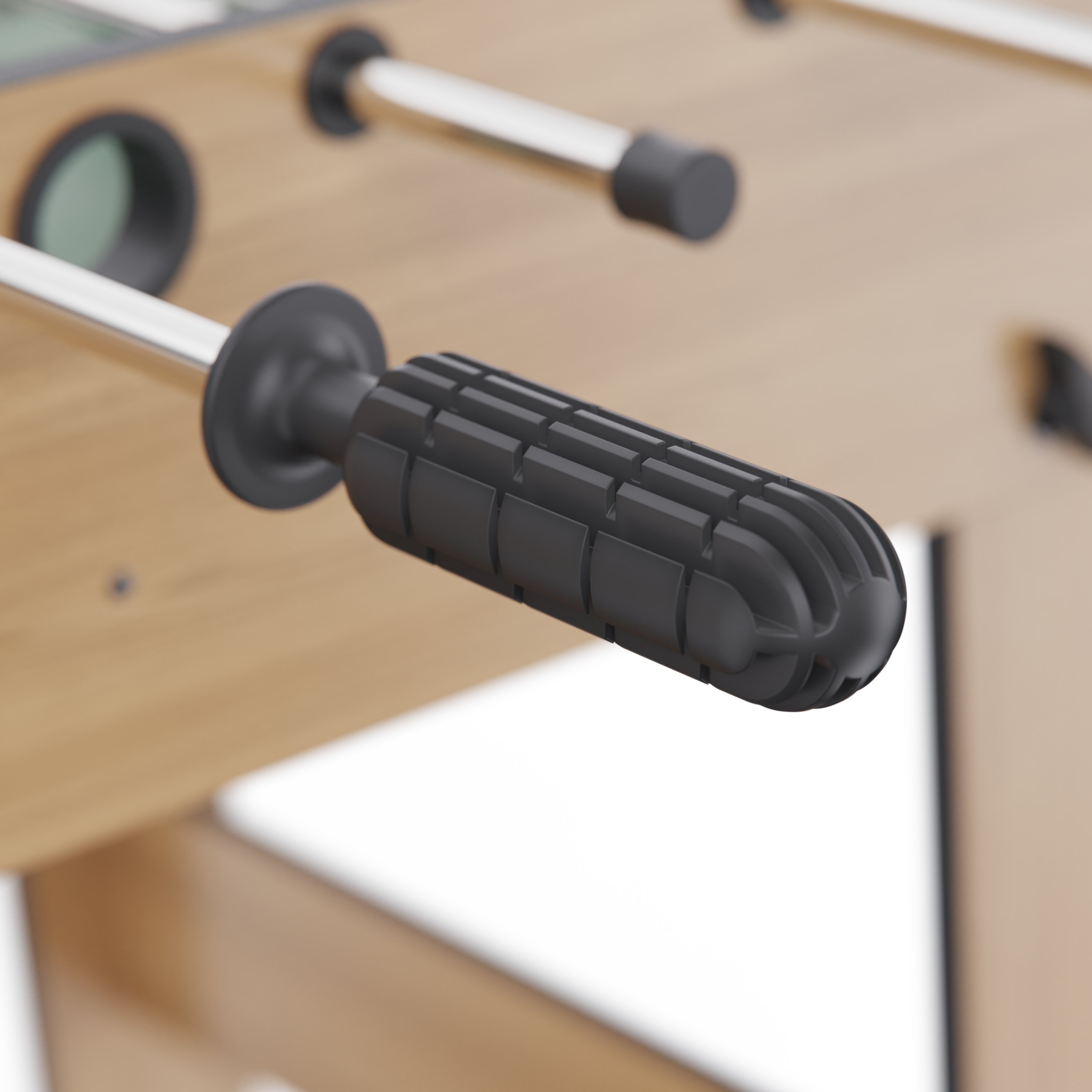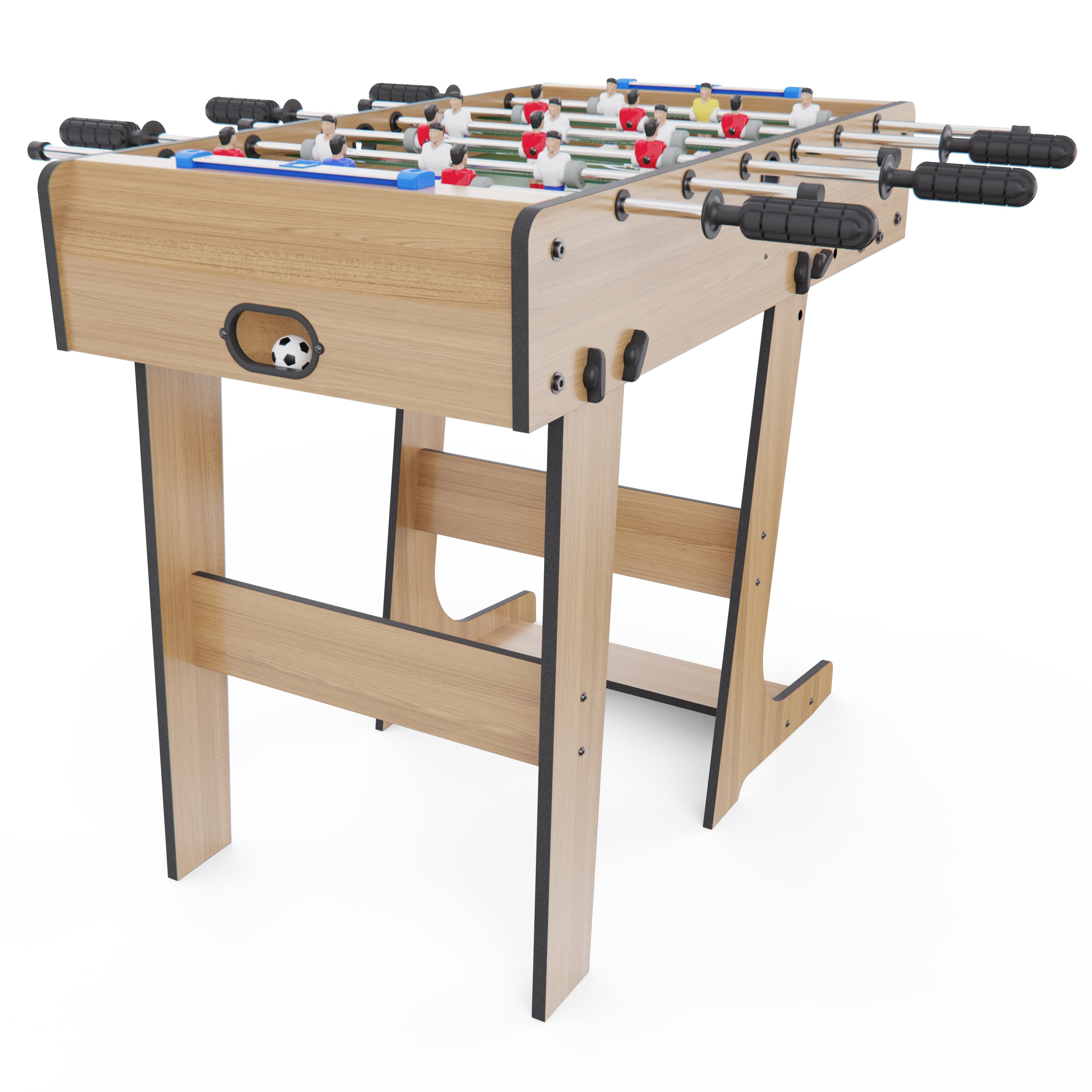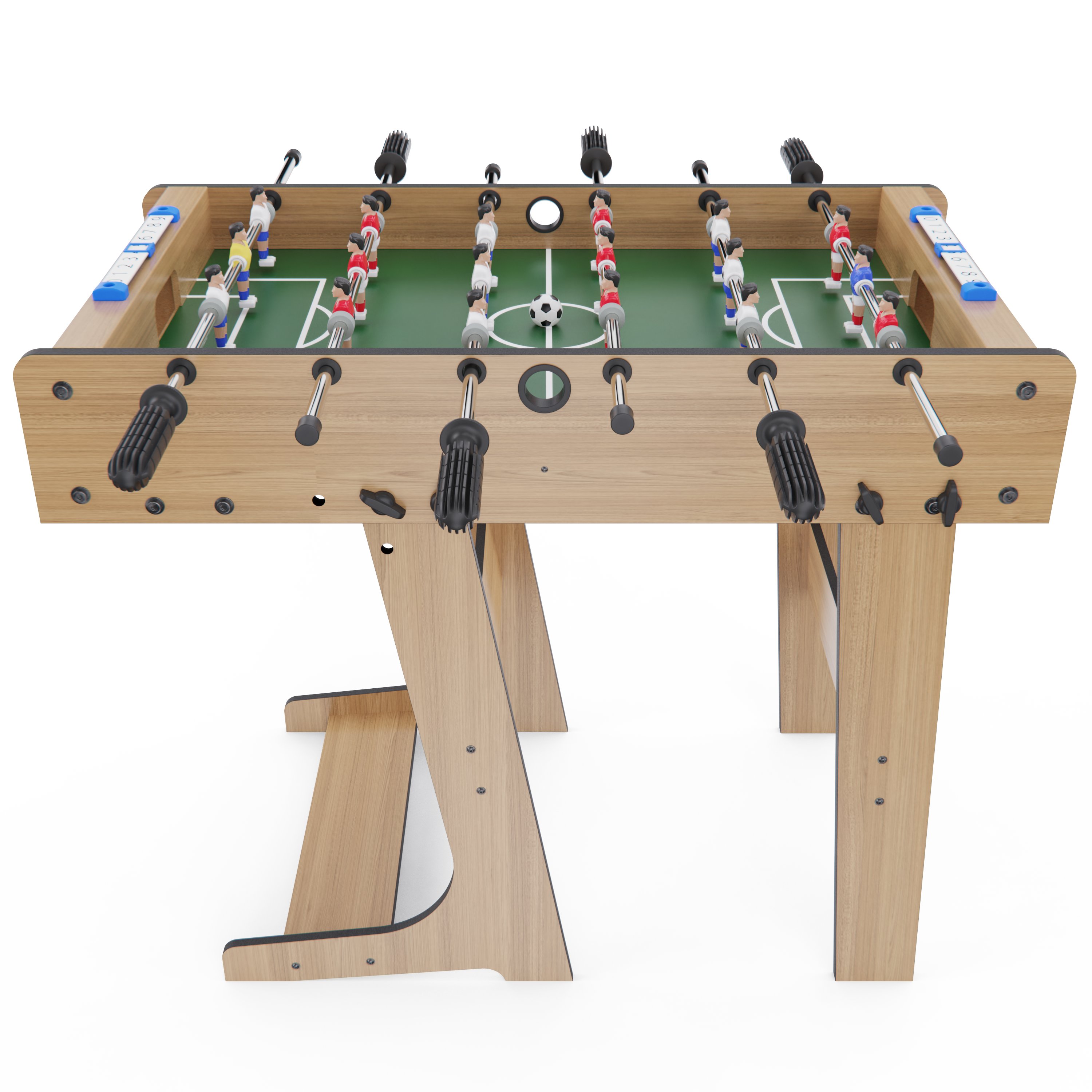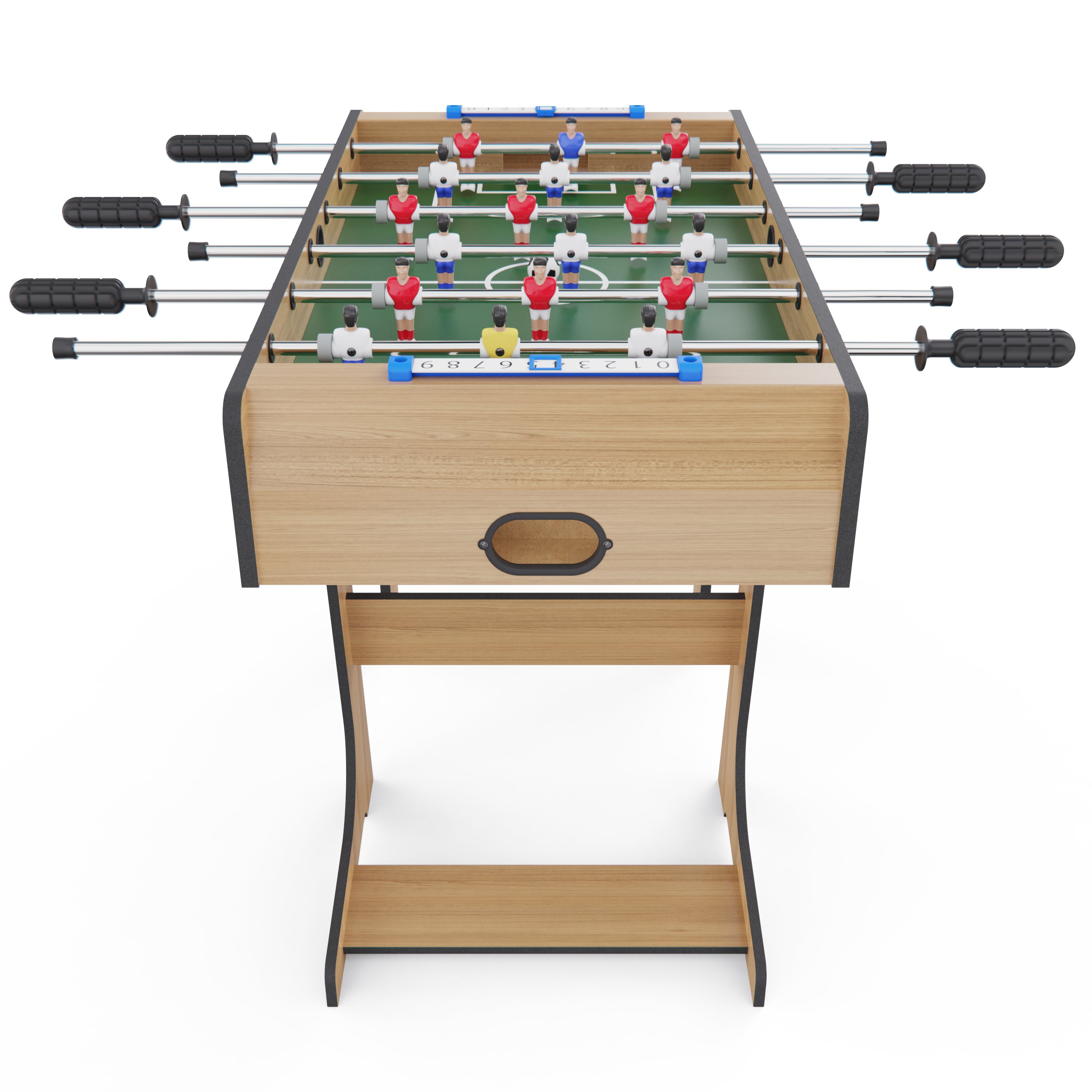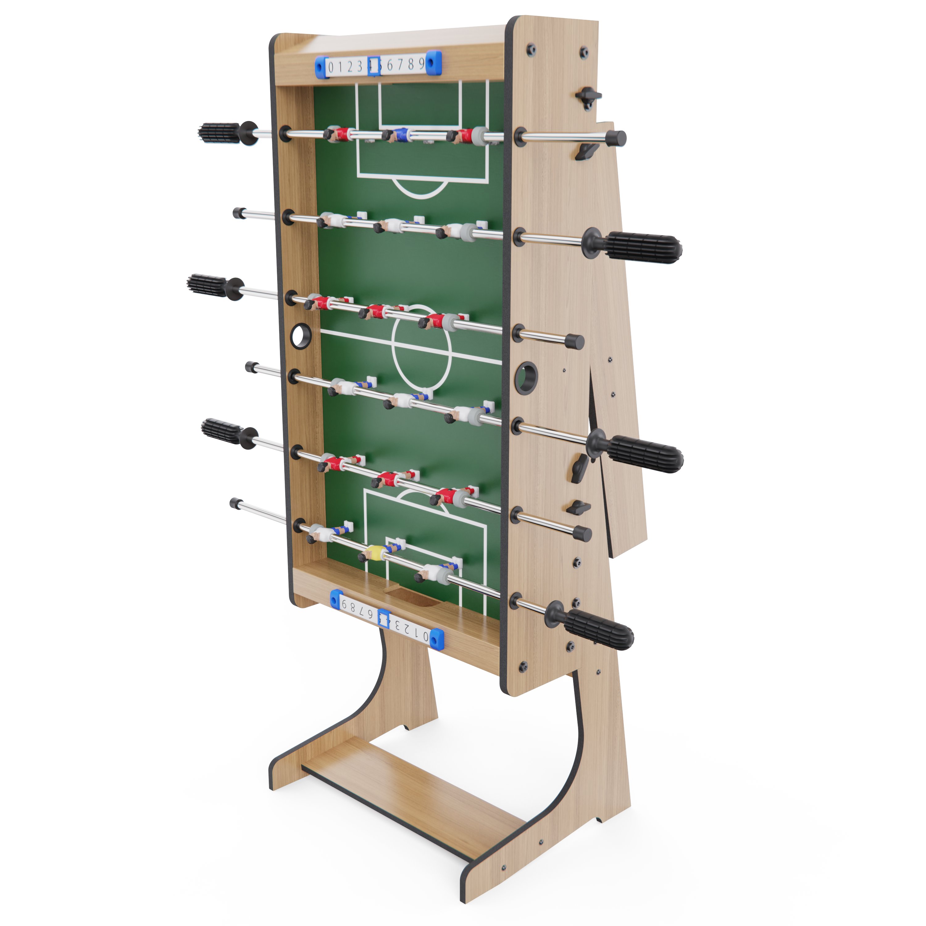 Высота ножек 60,5 см обеспечивает удобное расположение стола в помещении. Складная модель позволяет быстро сложить кикер после игры и убрать его на хранение, что особенно удобно для домашнего формата. В комплект входят 2 футбольных мяча, поэтому можно начинать игру сразу после сборки.