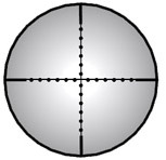 4. Прицельная сетка Mil-Dot с возможностью определения дистанции. Этот вариант сетки является наиболее распространенным на прицелах Leapers. Сетка Mil-Dot имеет большое перекрестие, пересекающее все поле прицела. В центральной части перекрестия через одинаковые интервалы нанесены многочисленные точки. Расстояние между двумя соседними точками при кратности увеличения 10х на расстоянии в 100 ярдов составляет 1 миллирадиан, или 3.44 МОА.