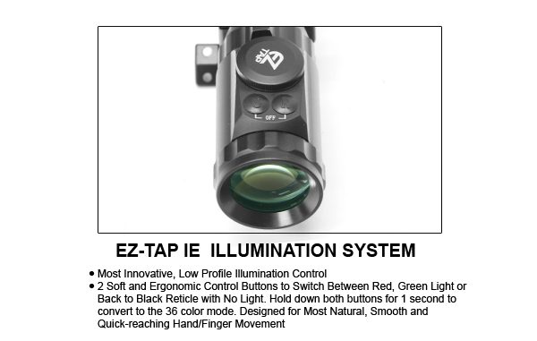 - Красная/зеленая подсветка прицельной марки в двуцветном режиме с контролем яркости.
