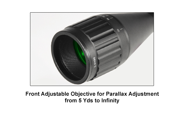 6. Отстройка параллакса – от 5ярдов(4,6м.) до бесконечности, регулируется кольцом на объективе.