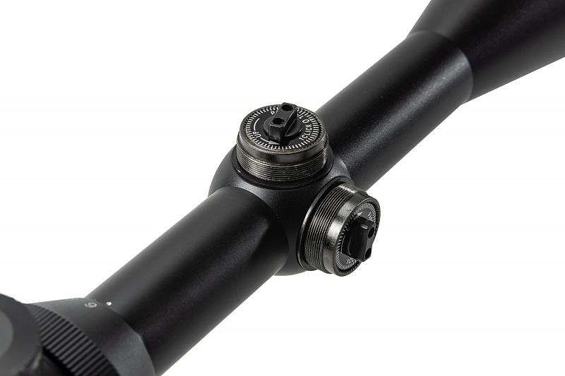 Прицел имеет три барабанчика: два – для ввода поправок по горизонтали и вертикали и один – настройка подсветки прицельной марки. Подсвечивается центр перекрестия, подсветка 2-х цветная: Красная и Зелёная по 5 уровней яркости + «выкл.». Кольцо регулировки кратности располагается на стыке трубы и объектива. Имеется кольцо фокусировки. Подсветка центра перекрестия красная/зелёная.