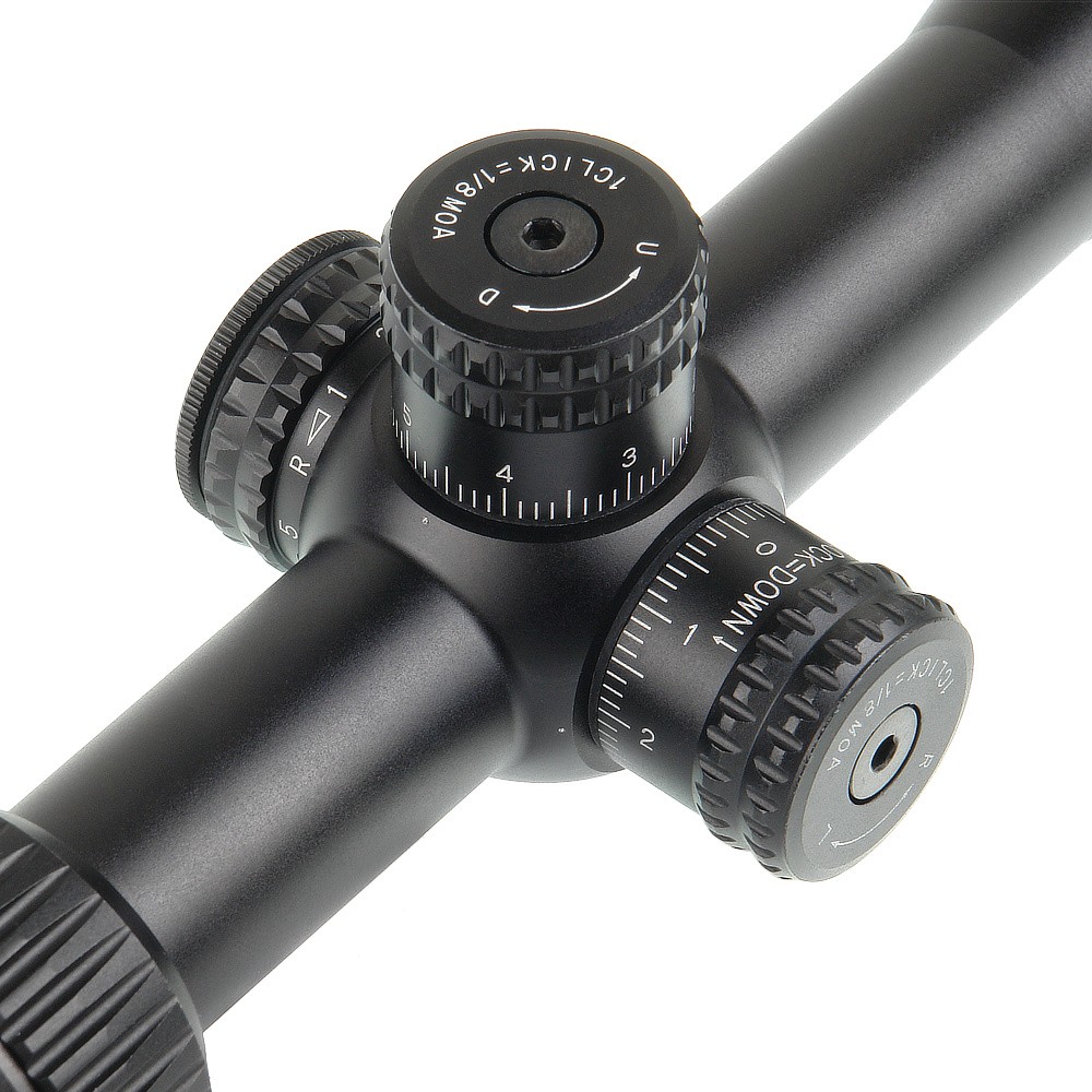 Окуляр с тонким краем комфортен для стрелка: он видит изображение в прицеле без лишних деталей, так как край корпуса вокруг линзы почти незаметен. Для подстройки под индивидуальные особенности зрения служит кольцо диоптрийной настройки на окуляре, которое вращается плавно, с дозированным усилием. Рядом на окуляре расположено кольцо для изменения кратности прицела.