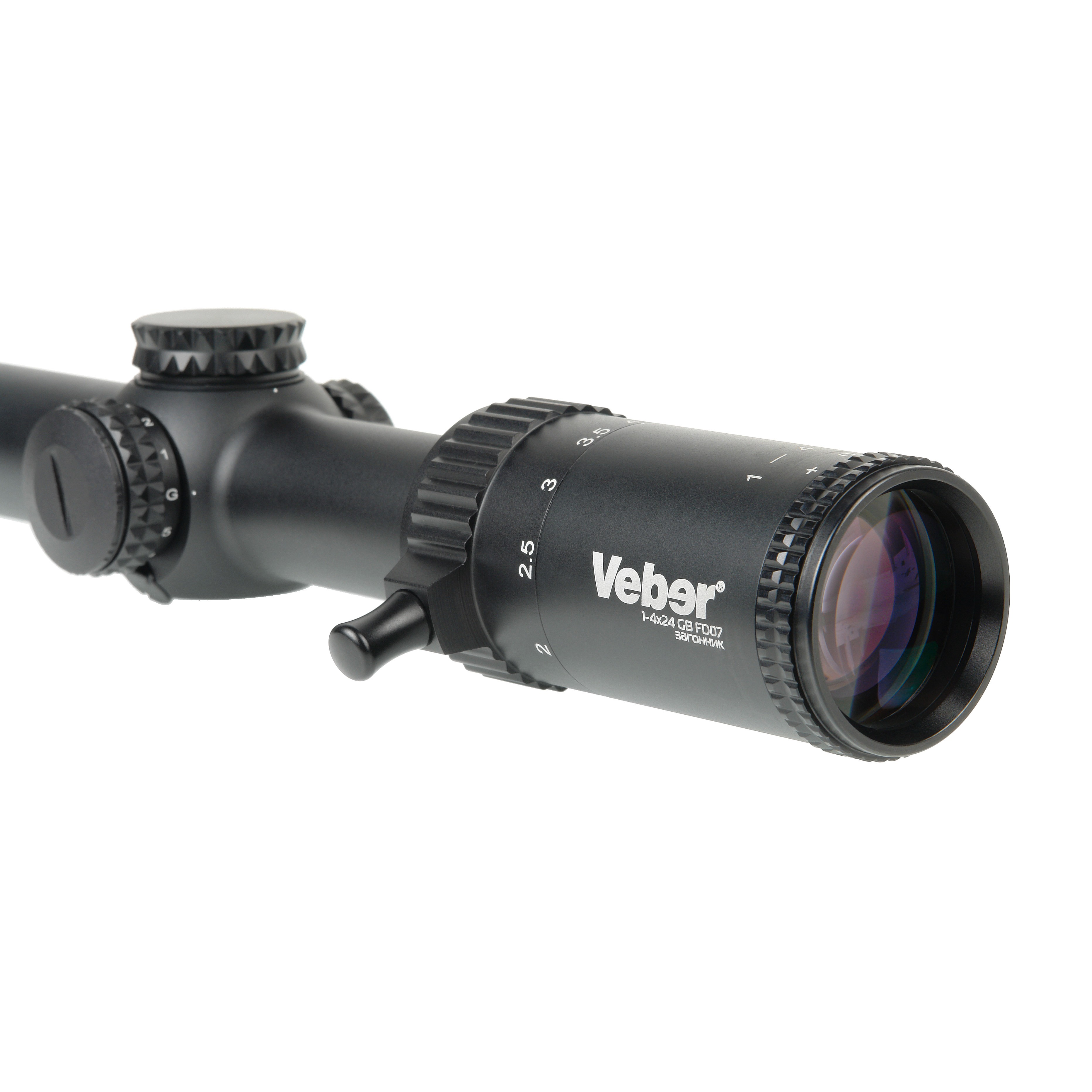 Veber Wolf 1-4х24 GB FD07 — прицел популярной серии Wolf с плавно регулируемым переменным увеличением от 1х до 4х, может использоваться во время прицельной стрельбы на загонной охоте. Базовое увеличение 1х позволяет комфортно проводить прицеливание двумя глазами, а плавное переменное увеличение наводиться на цель на разных дистанциях.