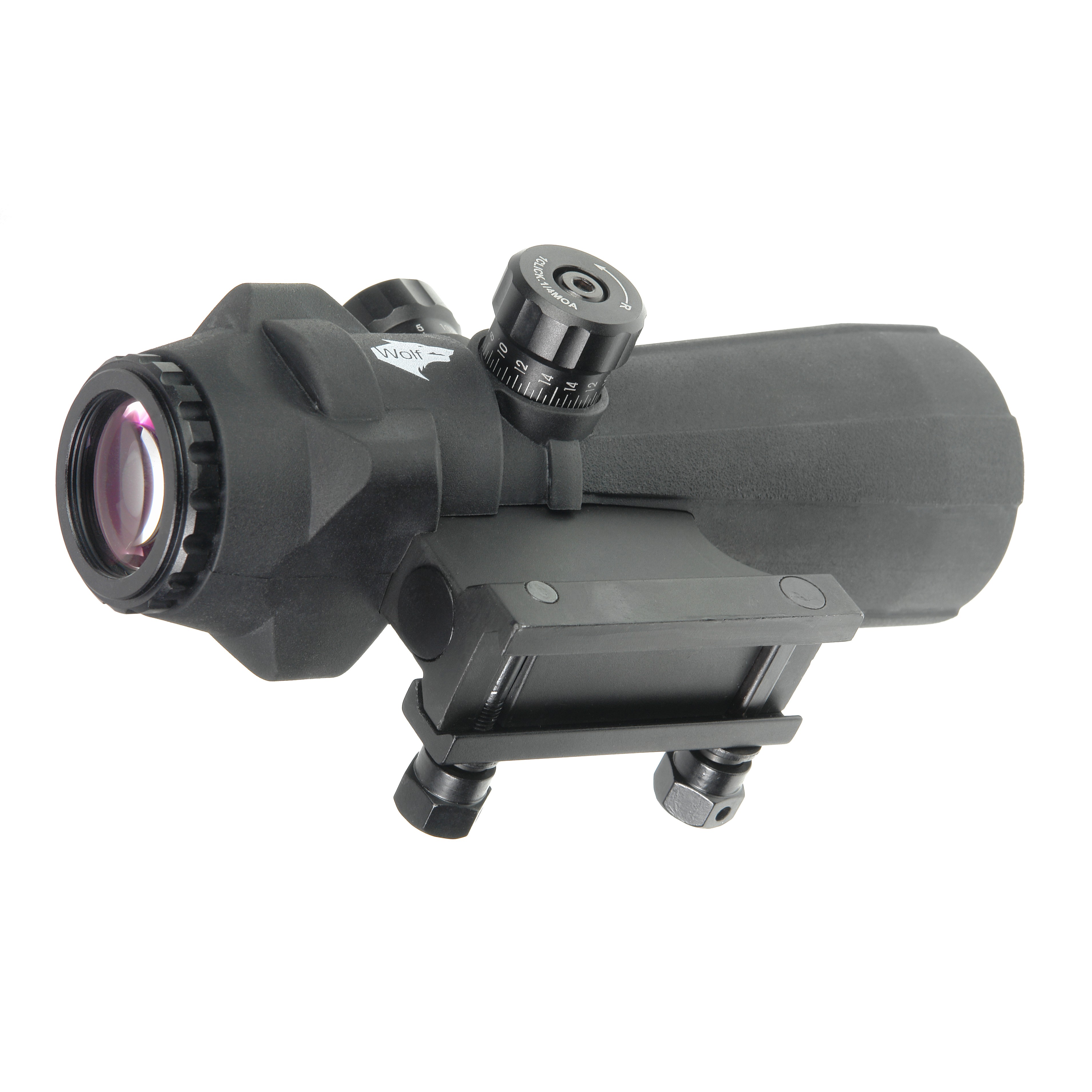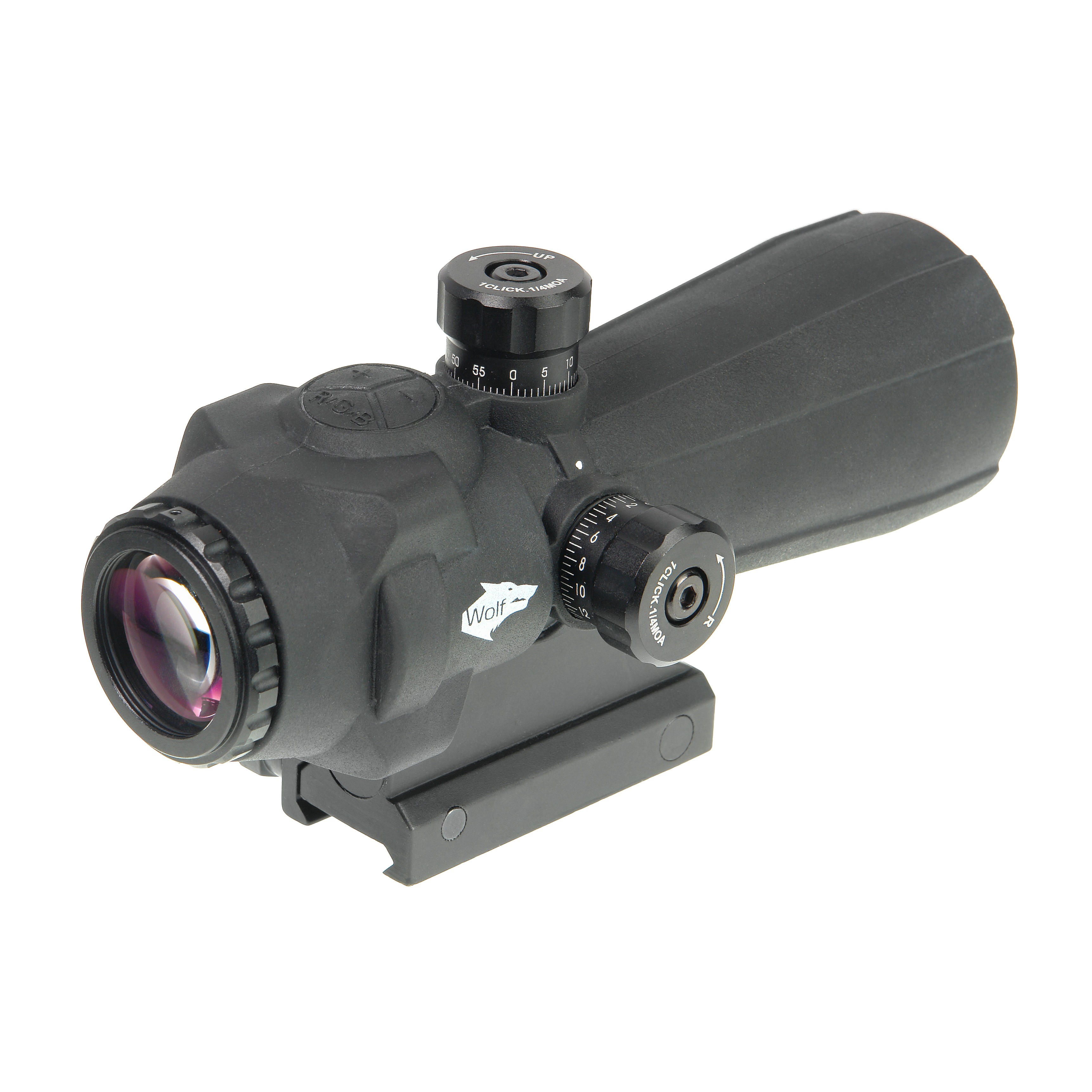 Wolf Prismatic 5x40 RGB - компактный и светосильный призматический прицел с 5-кратным увеличением и прицельной маркой с подсветкой. Благодаря толстому резиновому покрытию корпуса, прицел допускает «жесткое» обращение.