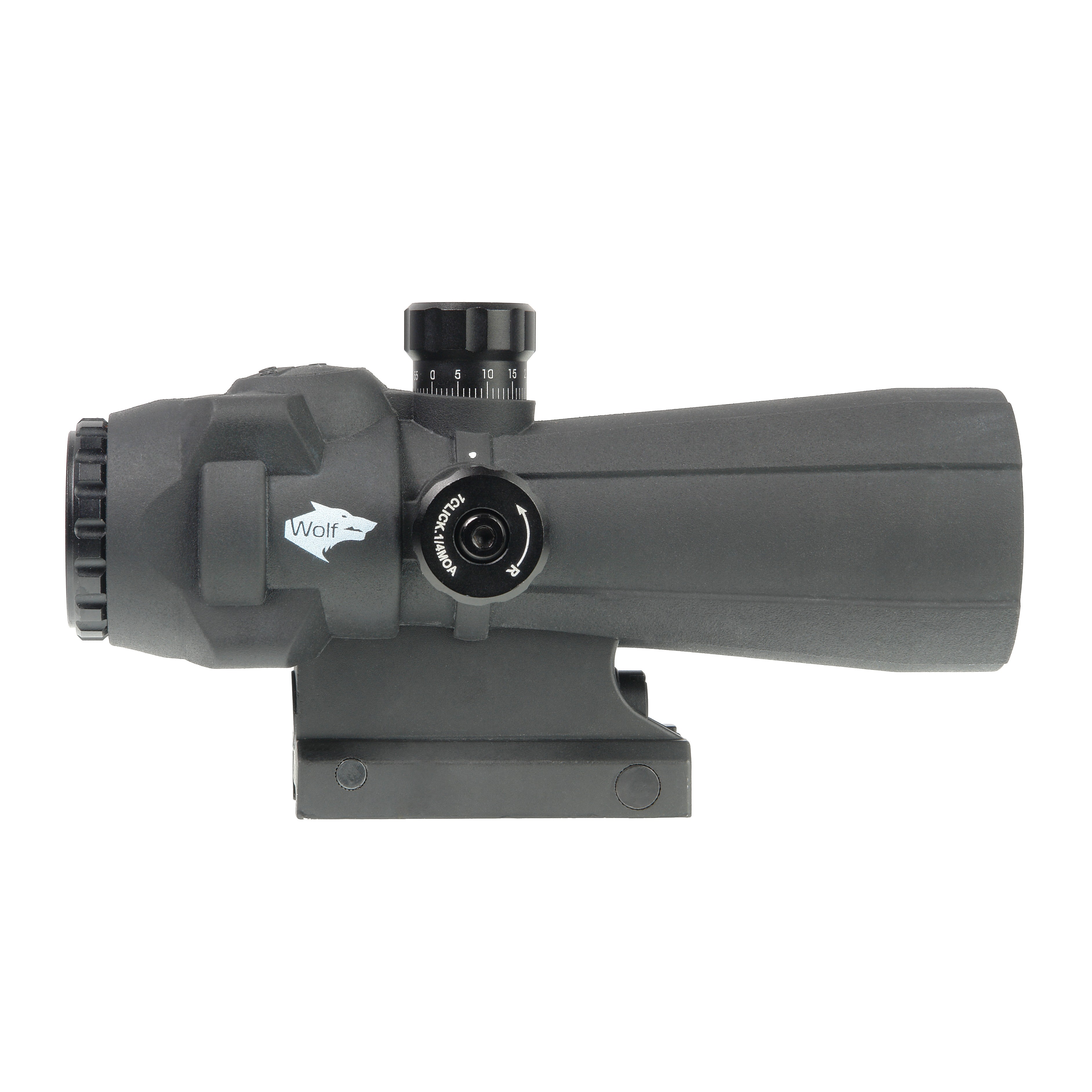 Внешние регулировочные барабанчики с четкими кликами дают возможность пользователю вводить поправки на ветер и высоту с ценой деления механизма поправок 1/4 МОА.