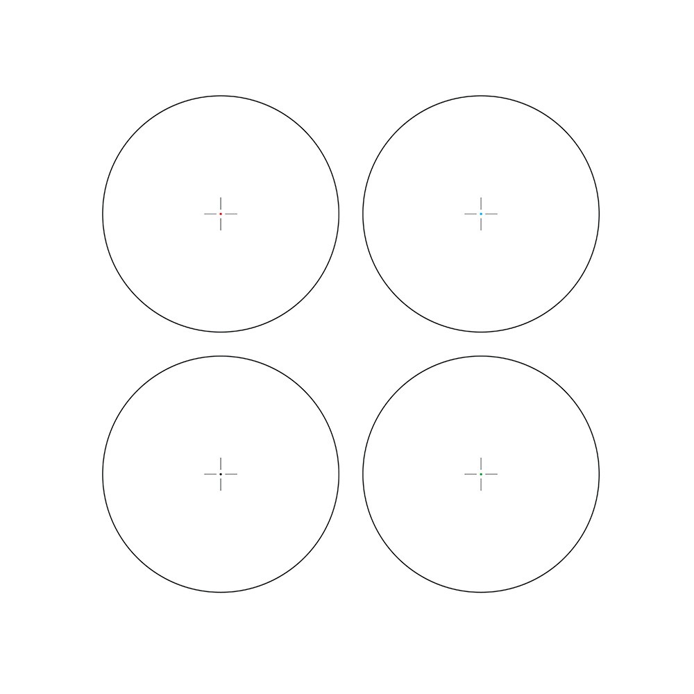 Прицельная марка Cross-Dot представляет собой крест с подсвеченной точкой. Цвет точечной подсветки выбирается из трех вариантов: красный, зеленый и синий, чтобы соответствовать личным предпочтениям охотника или видимости в различных условиях освещения. Яркость меняется в 21 ступень для каждого цвета.