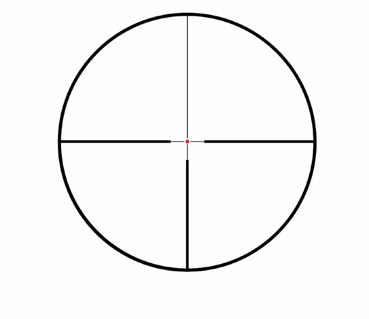 Вытравленная марка German #4 (15x, SFP) находится в фокальной плоскости окуляра, сохраняет постоянные визуальные размеры при перемене кратности, а угловые значения верны при 15x. Тонкое перекрестье между «пеньками» обеспечивает быстрый захват цели, а «плавающая» точка ø0,52 MOA в центре — точное прицеливание по месту. Толщина «пеньков» 0,84 MOA, прицельных линий 0,17 MOA; расстояние от «точки» до «пенька» 7,5 MOA. Для удобства прицеливания в сумерках, на ярком солнце или тёмном фоне «точка» подсвечивается красным. Яркость регулируется от 1 до 6, а в промежуточных «точках» — полностью выключается.