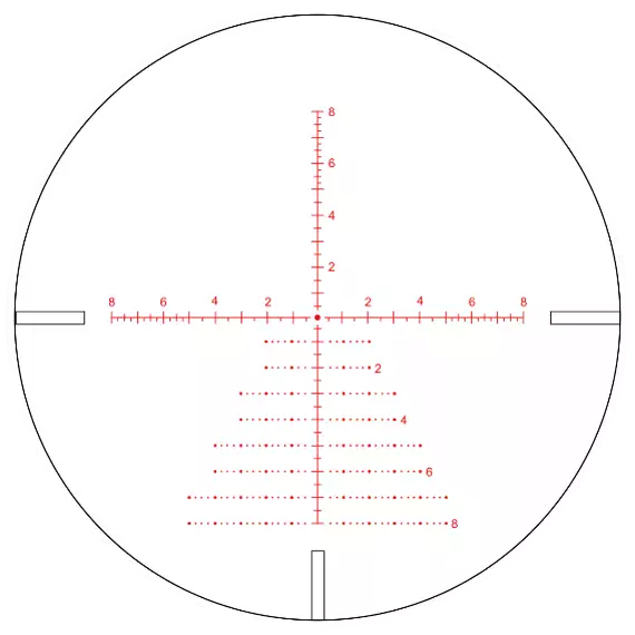 Продажа оптических прицелов Континенталь x6 3-18x50 ARI осуществляется с прицельной сеткой VCT-10A. Параметры выгравированы непосредственно на стекле во второй фокальной плоскости. Её линейные размеры стабильны при перемене кратности. Размер центральной прицельной точки составляет 0,18 MIL Кроме того, устройство оснащено шестиступенчатой системой подсветки прицельной точки. Скорректировать уровень яркости можно в диапазоне «солнечный свет – сумрак». Питание осуществляется от одной батарейки типа CR2032. Обратите внимание, элемент питания в базовую комплектацию не входит.