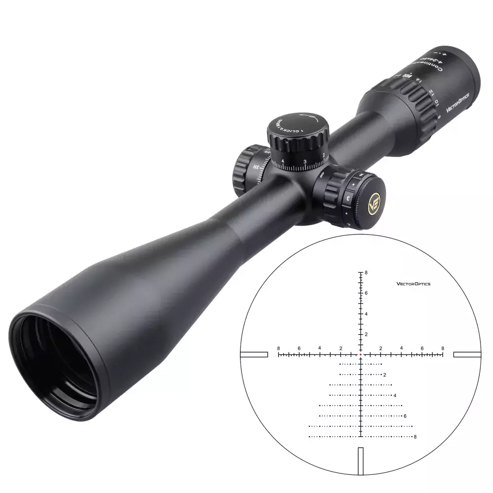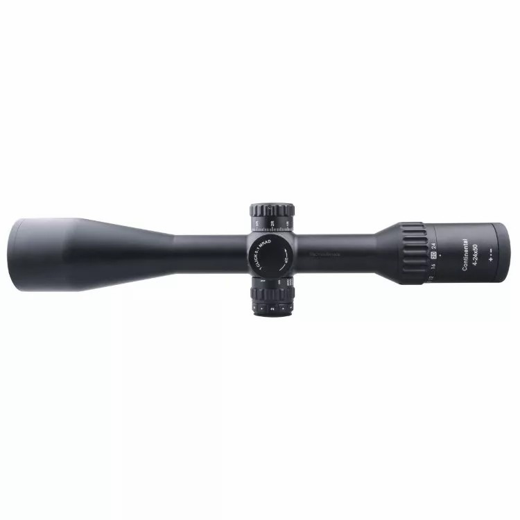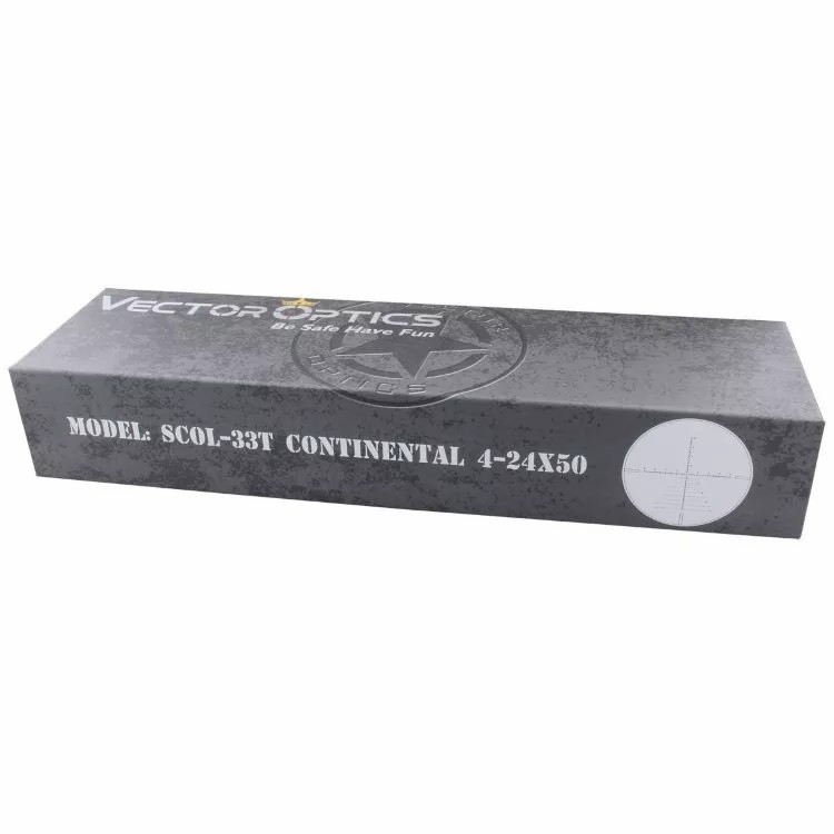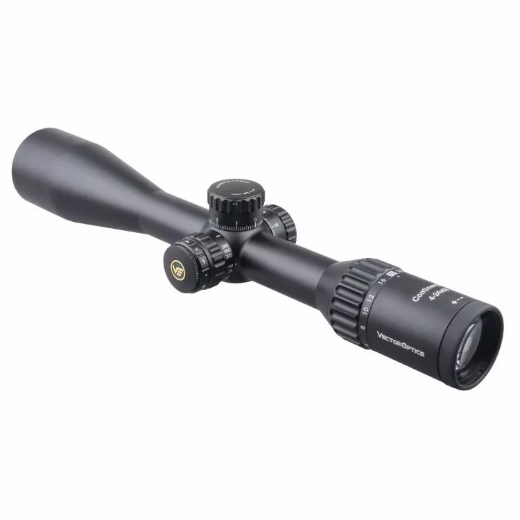 Vector Optics Continental 4-24x50 Tactical SFP — светосильный оптический прицел с кристально чистой картинкой без «тоннельного» эффекта, хорошей обзорностью, баллистической сеткой и отстройкой от параллакса. По своим параметрам подходит для высокоточной стрельбы на средних и дальних дистанциях, в том числе для варминтинга и аналогичного стрелкового спорта, сафари, охоты в засидке, с вышки, горных охот.