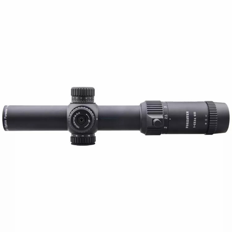 Оптическая система. 5-кратный зум обеспечивает плавное переключение между целями ближнего и дальнего плана, а рычажок-упор на колесе-трансфокаторе позволяет быстро и безошибочно выставить рабочее увеличение. За счёт окулярной линзы большего диаметра, картинка, наблюдаемая в загонно-тактический прицел Forester 1-5x24 GENII SFP, будет более светлой, чем у простого Forester 1-5x24 SFP. Чтобы повысить контраст и яркость, на все оптические поверхности «стекло-воздух» нанесено многослойное просветляющее покрытие. После всех улучшений, внесённых в оптическую систему прицела, наблюдатель получает чёткое, чистое и реалистичное изображение по всему полю зрения, и никакого эффекта «замочной скважины» даже на максимальной кратности.