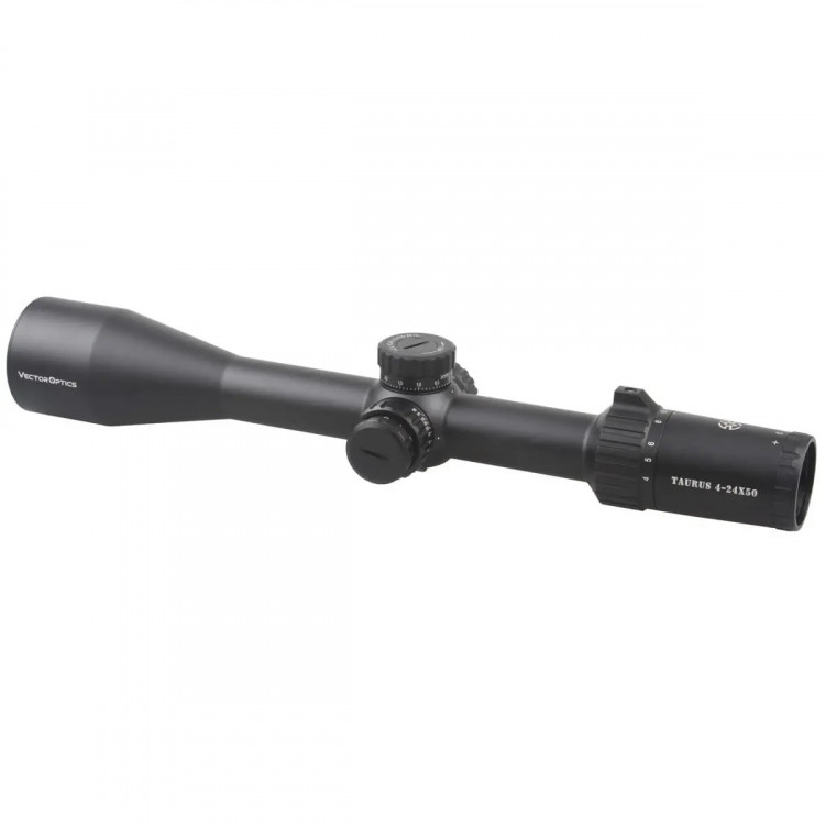 Vector Optics Taurus 4-24x50 FFP — premium-прицел с 6-кратным зумом, FFP сеткой и светосильной оптикой. Предназначен для высокоточной дневной стрельбы на средних и дальних дистанциях из огнестрельного оружия, PCP и CO2 пневматики. Подходит как для охоты, так и для стрельбы по мишеням.