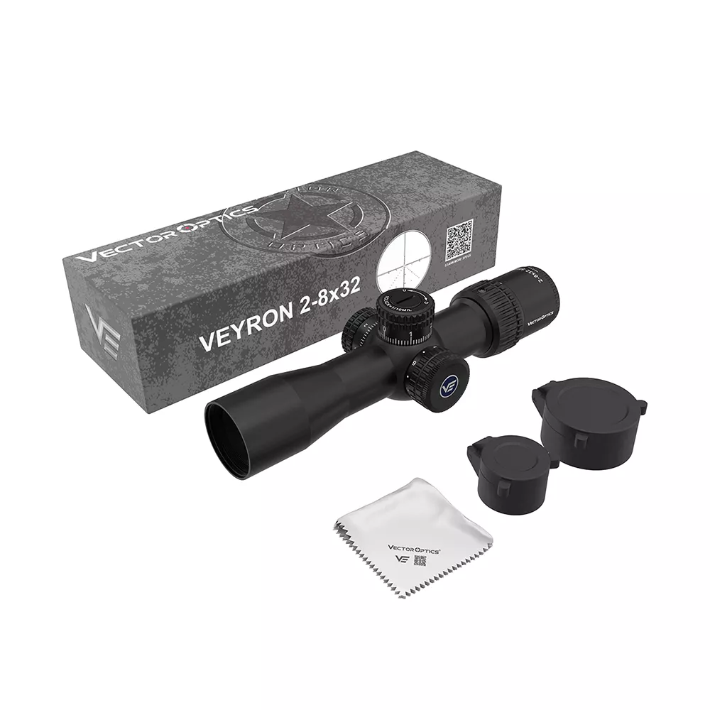 Прицел Vector Optics Veyron 2-8х32 IR — компактный «универсал» с 4-кратным зумом, открытыми Push/Pull барабанами и баллистической SFP сеткой, разработан специально для малых / средних дистанций, спортивно-развлекательной стрельбы или охоты с подхода.
