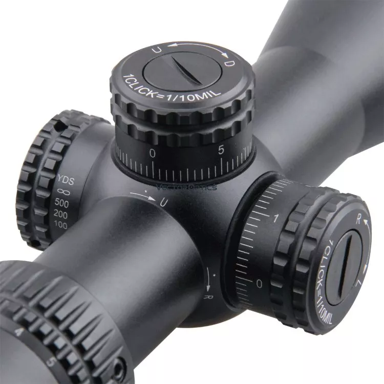 - Барабаны подпружиненные, типа тактических. Шаг выверки 1/10 mil.