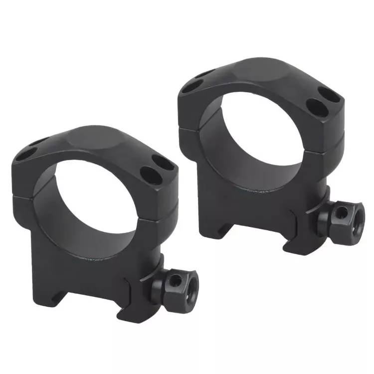 Аксессуары. Крышки подпружиненные, с фиксацией положения, на колесе-трансфокаторе есть точка крепления под рычажный упор (в комплект не входит) для более точной и плавной смены кратности, а объектив можно поставить штатную бленду-рассекатель для защиты от бликов на ярком солнце. Для установки на оружие с планкой Weaver в комплекте идут оригинальные алюминиевые кольца ø 30 мм.
