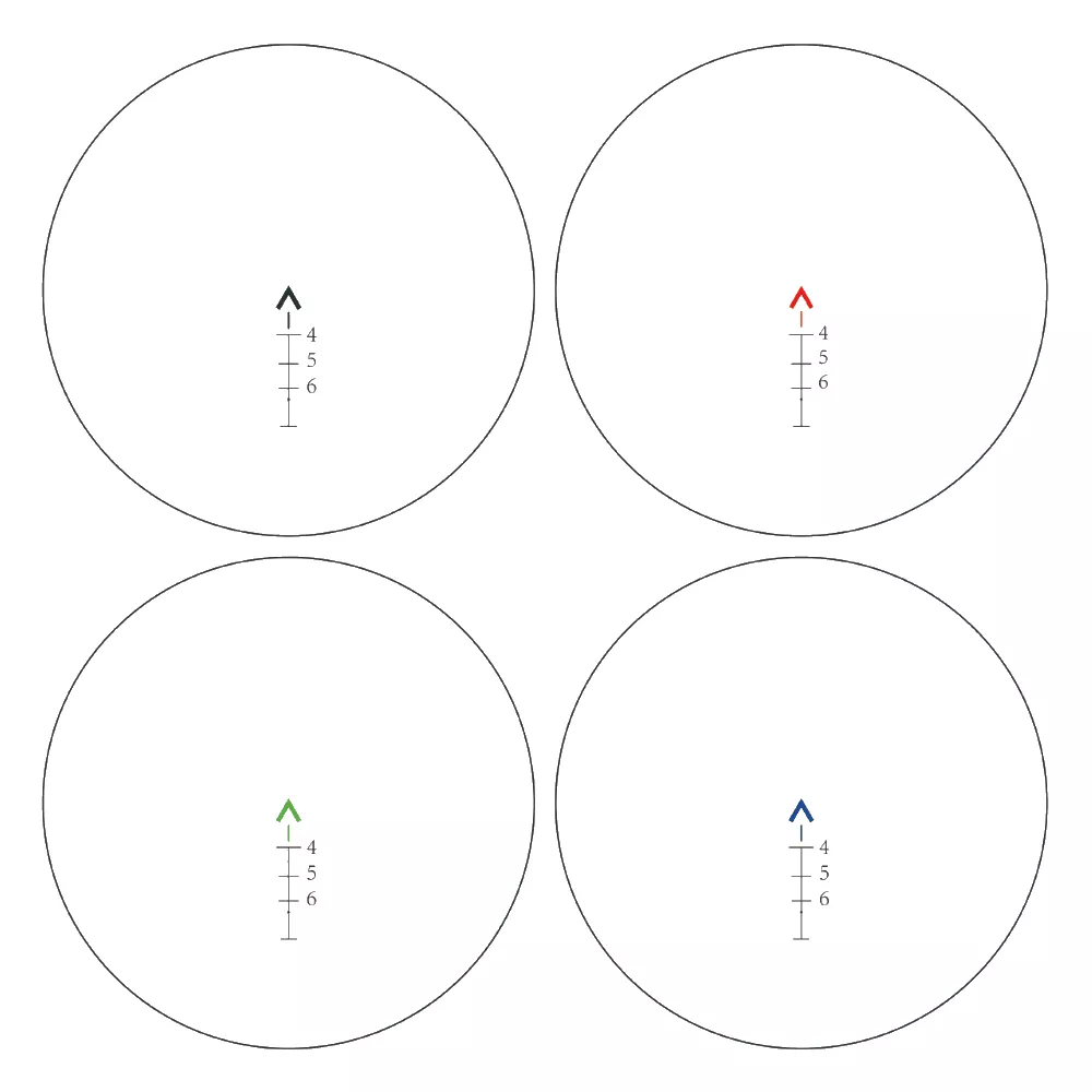 Прицельная сетка Сhevron представляет из себя вертикальную маркированную линию со стрелкой, которая расположена посередине. Прицельная марка Сhevron может подсвечиваться зелёным, синим и красным цветом, благодаря чему, охотничий прицел можно легко адаптировать под расцветку любой местности.
