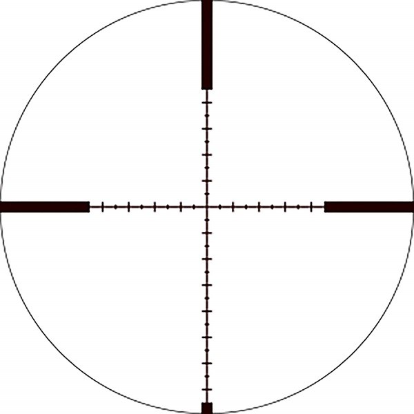 - Прицельная сетка во второй фокальной плоскости - сетка всегда сохраняет свои размеры, а поправки на сетке, а также определения расстояния по по сетка возможно только на максимальной кратности.