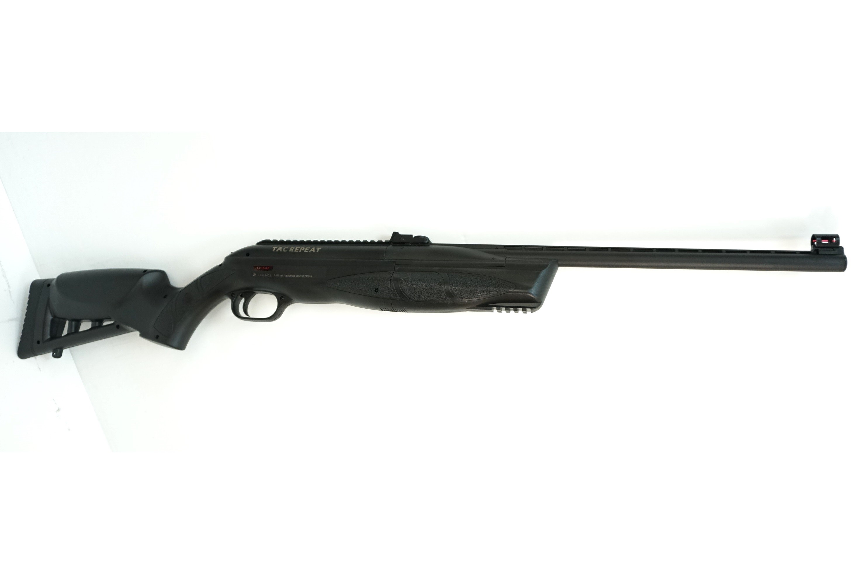 Пневматическая винтовка ASG TAC Repeat (3 Дж) – это «переломка» пружинно-поршневого типа от датского бренда, довольно качественная и надежная модель по недорогой цене. В отличие от большинства винтовок данного типа, ASG TAC Repeat стреляет в полуавтоматическом режиме, энергия выстрела обеспечивается баллончиком на 88 гр. углекислого газа. Магазин винтовки рассчитан на 12 пуль из свинца калибра 4,5 мм. Скорость выстрела в штатной комплектации винтовки – 73 м/с, после апгрейда скорость выстрела увеличивается до 175 м/с.