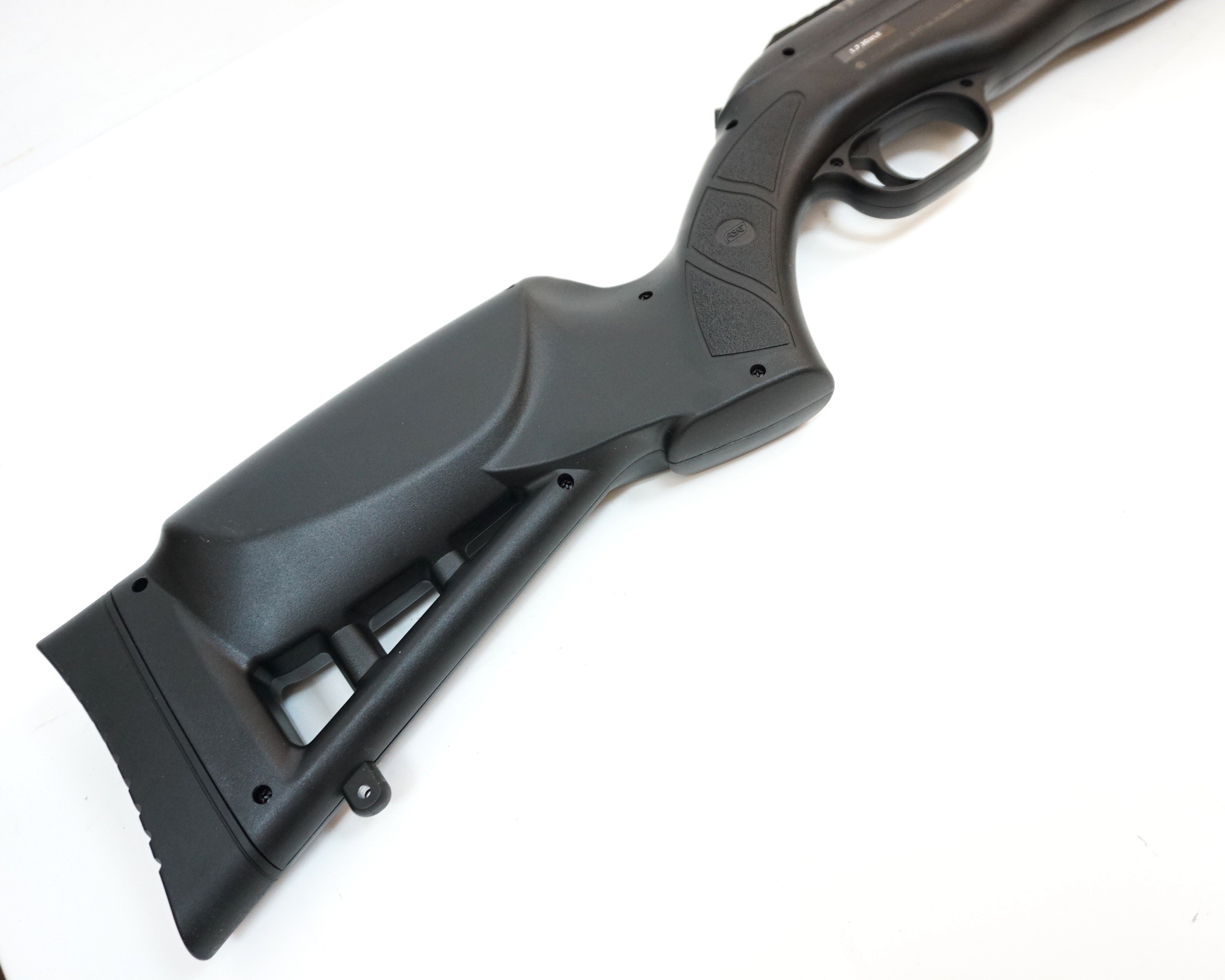 Ствол винтовки удлиненный (длина 55 см), с нарезами внутри. Дульная энергия составляет 1,7 Дж, в результате усиления она увеличится до 7 Дж. Неавтоматический предохранитель убережет стрелка от случайного выстрела.
