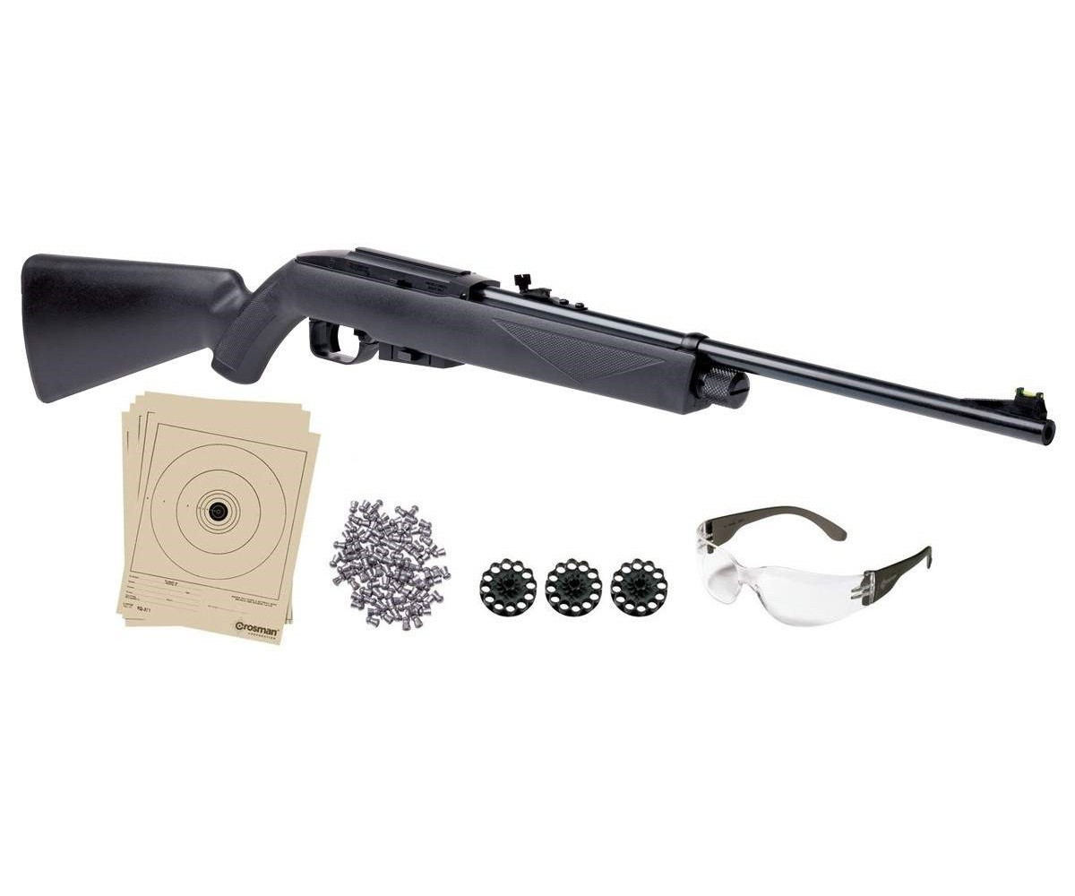 Модель обладает прицельным приспособлением открытого типа с контрастными нитями. Начальная скорость пульки равна 175 м/с, что является стандартом для данных винтовок. Кроме того, есть возможность установить на винтовку оптический прицел. Необходимо отметить, что пневматическая винтовка Crosman 1077 заряжается с задней стороны барабана, но вращение производится против часовой стрелки. Стрельба осуществляется с помощью самовзвода. Есть предохранитель на спусковой скобе. Стандартными прицельными приспособлениями являются мушка-целик. Мушка имеет фибероптическую нить.