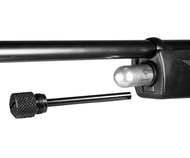 Пневматическая винтовка Crosman 1077 - простая и легкая на 12 зарядов, движущей силой которой выступает газовый баллон на 12 г CO2, которого хватает на 40 выстрелов. Посадка баллона размещена внутри цевья под стволом. Удобное месторасположение, которое позволяет спокойно открутить винт, вставить баллон и обратно спокойно закрутить.