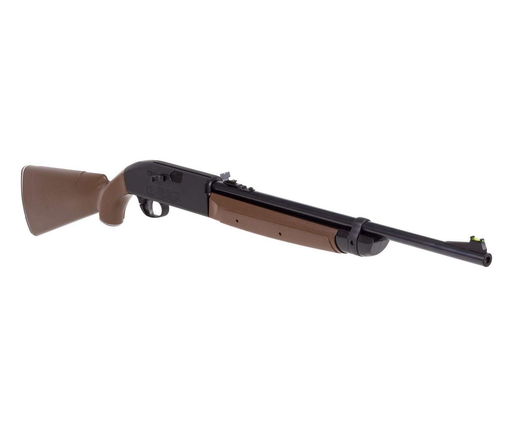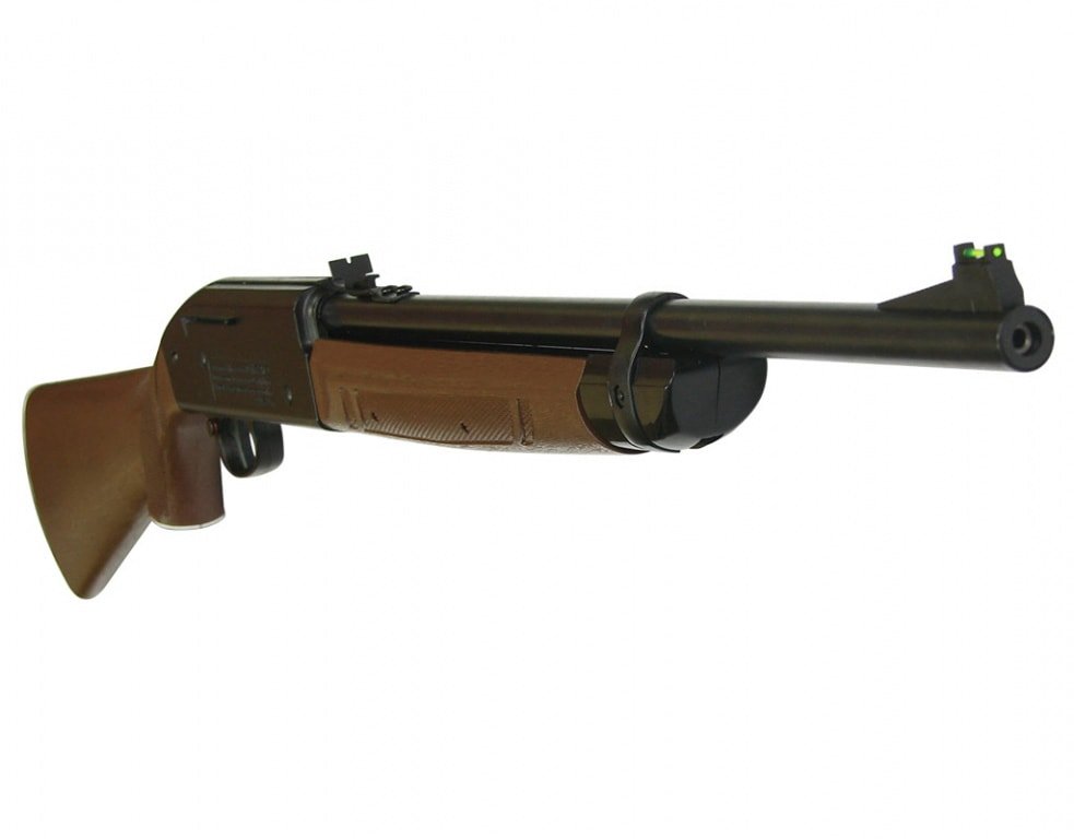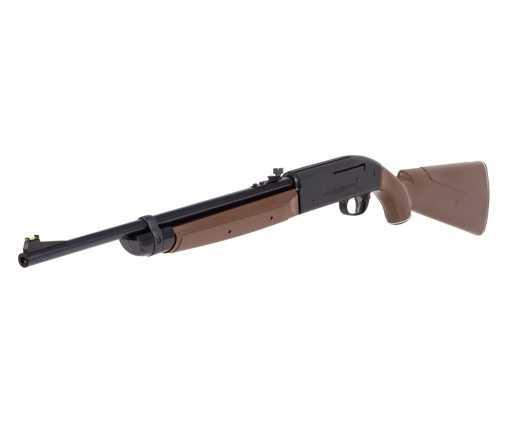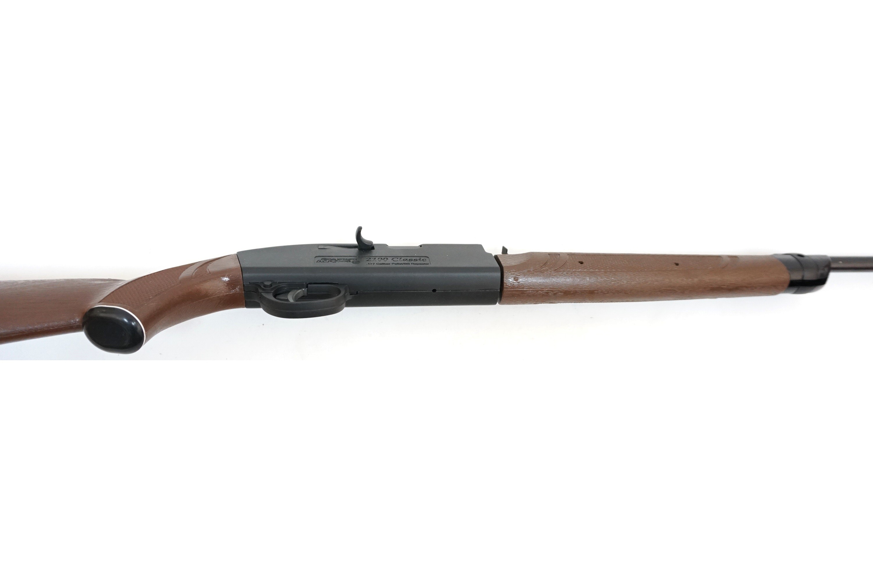 Crosman 2100 B является пневматической мультикомпрессионной винтовкой калибра 4,5 мм. Давление воздуха, нужное для производства выстрела, создается посредством предварительной ручной накачки «насоса» специального накопителя. В среднем для накачки надо 8-12 движений. Такие винтовки не имеют недостатков, свойственных пружинно-поршневым аналогам - инерции поршней, отдачи, при этом СО2 винтовки хуже тем, что баллон с газом ограничивает количество выстрелов. Пневматическая винтовка Crosman 2100 B позволяет стрелять свинцовыми пулями и омедненными шариками из стали обозначенного калибра. Число шариков для стрельбы составляет до 200 в магазине-бункере, размещённом прямо в рукоятке. Изначальная скорость пули, которая заявлена производителем, - 230 м/с, если стрелять шариком ВВ, и она составляет 221 м/с, если стрелять свинцовой пулей. Скорость пули прямо зависит от числа движений для накачки. Масса и форма пули тоже влияют на скорость выстрела и его точность. Масса винтовки Crosman 2100 B - 2,18 кг, её общая длина 1010 мм. Лёгкий вес данной винтовки позволяет её брать с собой при отправлении на природу, где можно с ней успешно охотиться. Сама винтовка сбалансированная и прикладистая, стрелять из неё удобно, поскольку отдачи почти нет. Её ложе и цевье созданы из прочного коричневого пластика, их можно при разборке отделить от основы. Прицельные приспособления принадлежат к открытому типу, мушка лишена намушника, целик регулируется по высоте и по горизонту. В тыльной части ствольной коробки находится «ластохвост» - это специальный кронштейн для крепления прицела оптического либо коллиматорного.