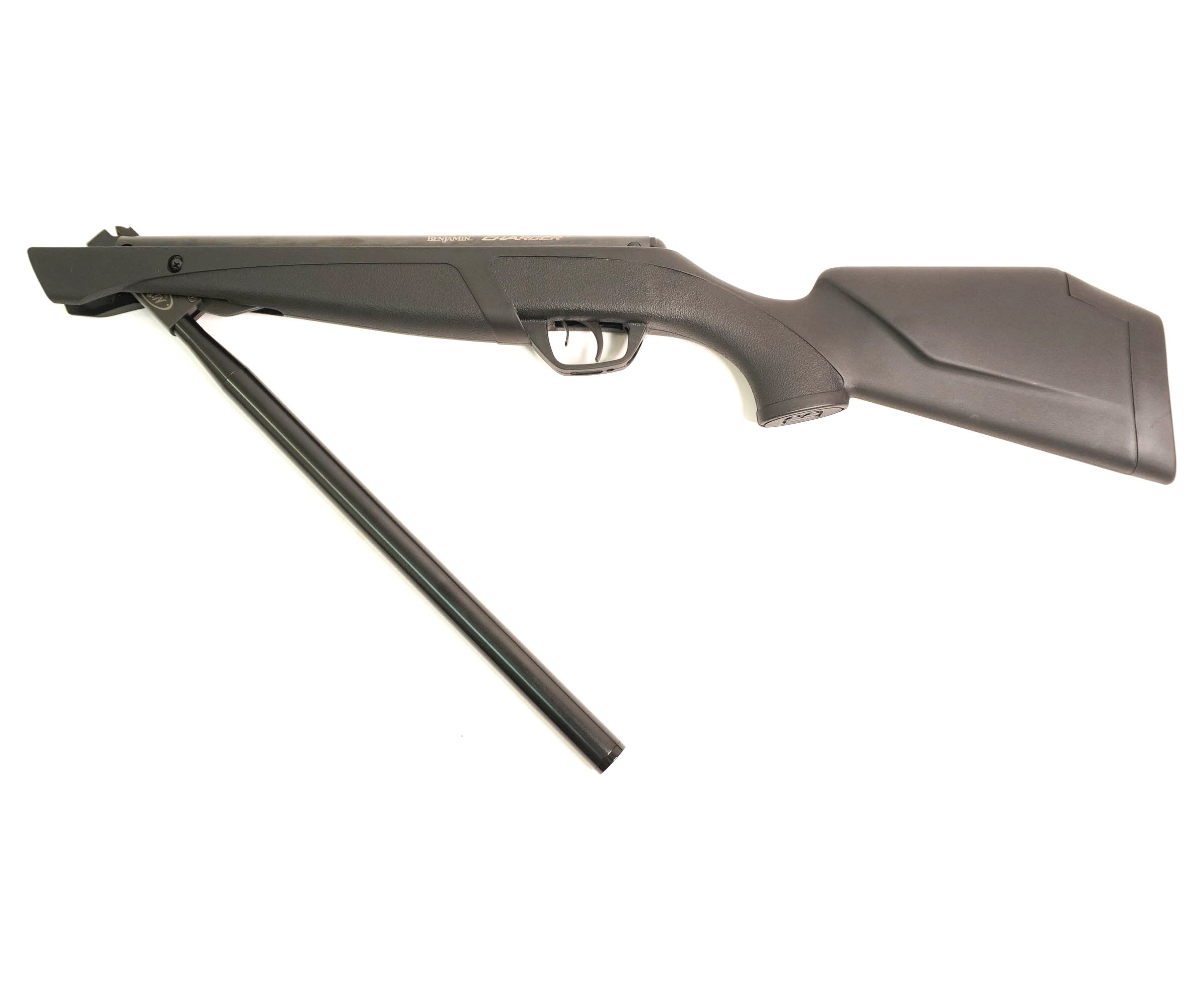 Пневматическая Crosman Benjamin Charger - считается превосходной винтовкой, простой в применении и очень мощной, и вместе с этим сочетает и элегантность. Винтовка однозарядная, имеет отношение к пружинно-поршневому виду. Изделие отличает от базовой модели то, что снабжено Nitro Piston. Что это? Взамен традиционной витой пружине, в конструкции изделия содержится газовая пружина. За счет новейшей технологии Nitro Piston - запатентованной, от нитро-поршневой винтовки на 70% исходит меньше шума, нежели от ее классических пружинно-поршневых братьев, а также и уменьшен уровень вибрации. Изделие относительно легкое - всего 3 кг, однако при этом имеет отличную мощь. Оружие заряжается одной пулей, обладающей скоростью в 305 м/с. Взвод винтовки производится переломом ствола. Корпус и ложе пневматической винтовки Crosman Benjamin Charger произведены из пластика черного цвета, ударостойкого и прочного. Ложе удобное, комфортное. Ствол изделия произведен из стали оружейной - высокого качества. Внутри канала ствола имеются четкие нарезы, т.е. нарезной. Приклад сделан из полимера высокого качества, содержащий затыльник из резины. Цевье и рукоять обладают множеством выпуклых точек, что помогает лучше держать оружие. Оружие имеет длину - 1105 мм. На данное оружие нужно установить оптический прицел,который идет в комплекте. Также в наличии у Crosman Benjamin Charger имеется автоматический предохранитель, позволяющий предотвратить ложные выстрелы. Предохранитель крючкового типа. Винтовка имеет двухпозиционный спусковой крючок, который регулируется. А это дополнительно оказывает помощь в удобстве и хорошей меткой стрельбе.