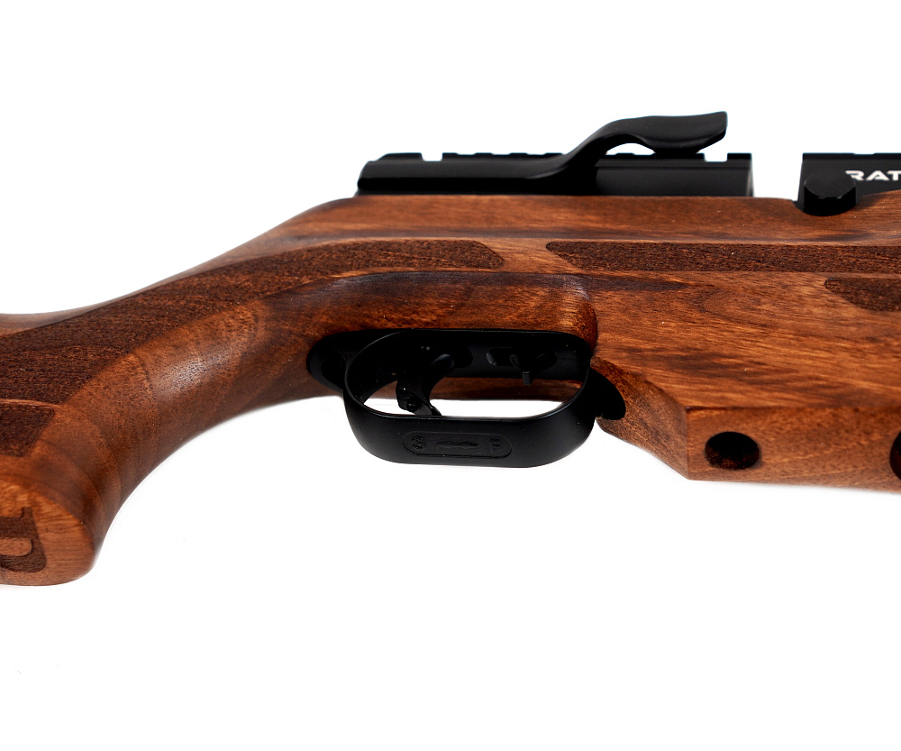 Основной материал винтовки – дерево, ствол оружия выполнен из стали. Нарезы внутри ствола повышают качеством стрельбы. Предусмотрена база для установки оптического прицела – в виде направляющей Weaver / Picatinny 22 мм.