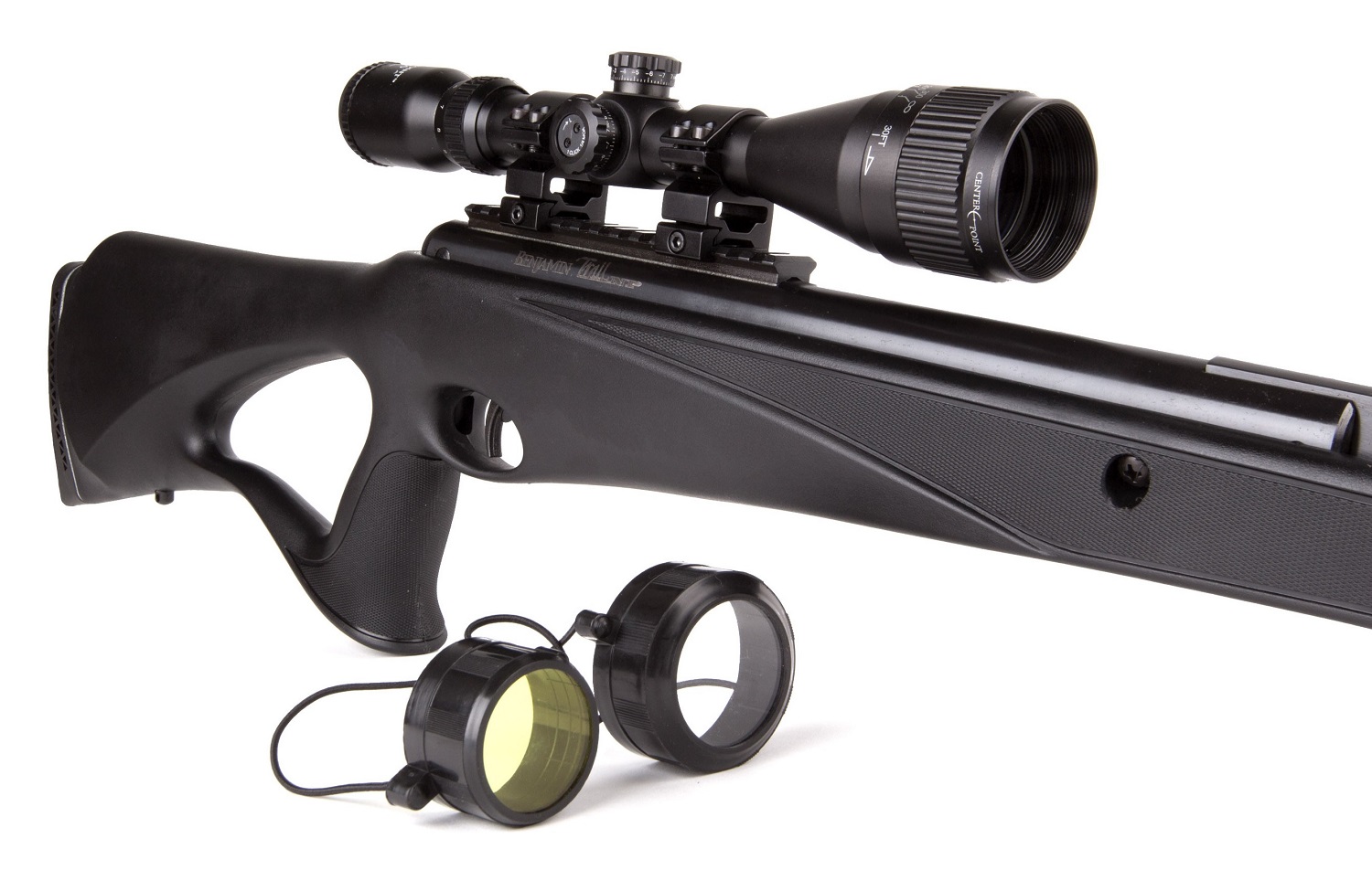 «Переломка» имеет внушительные параметры (длина - 1090 мм, вес 3,6 кг), но благодаря эргономичному дизайну держать её в руках одно удовольствие. Для прицельной стрельбы в комплекте с NP 8-BT1K77SNP NITRO от Crosman идёт оптический прицел, Centerpoint 3-9x40. Крепление «планка Вивера», других приспособлений для прицельной стрельбы винтовка не предусматривает (мушки нет).