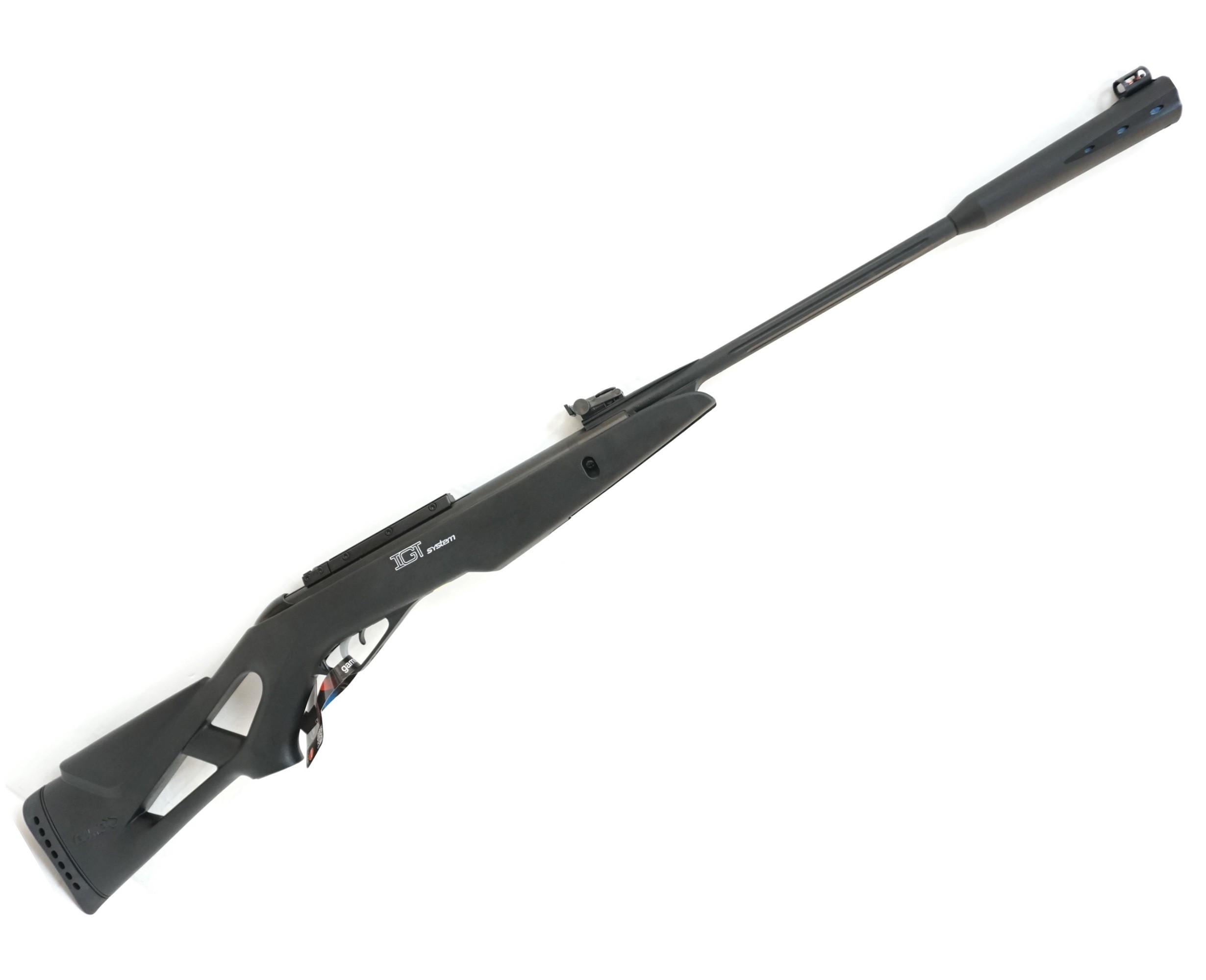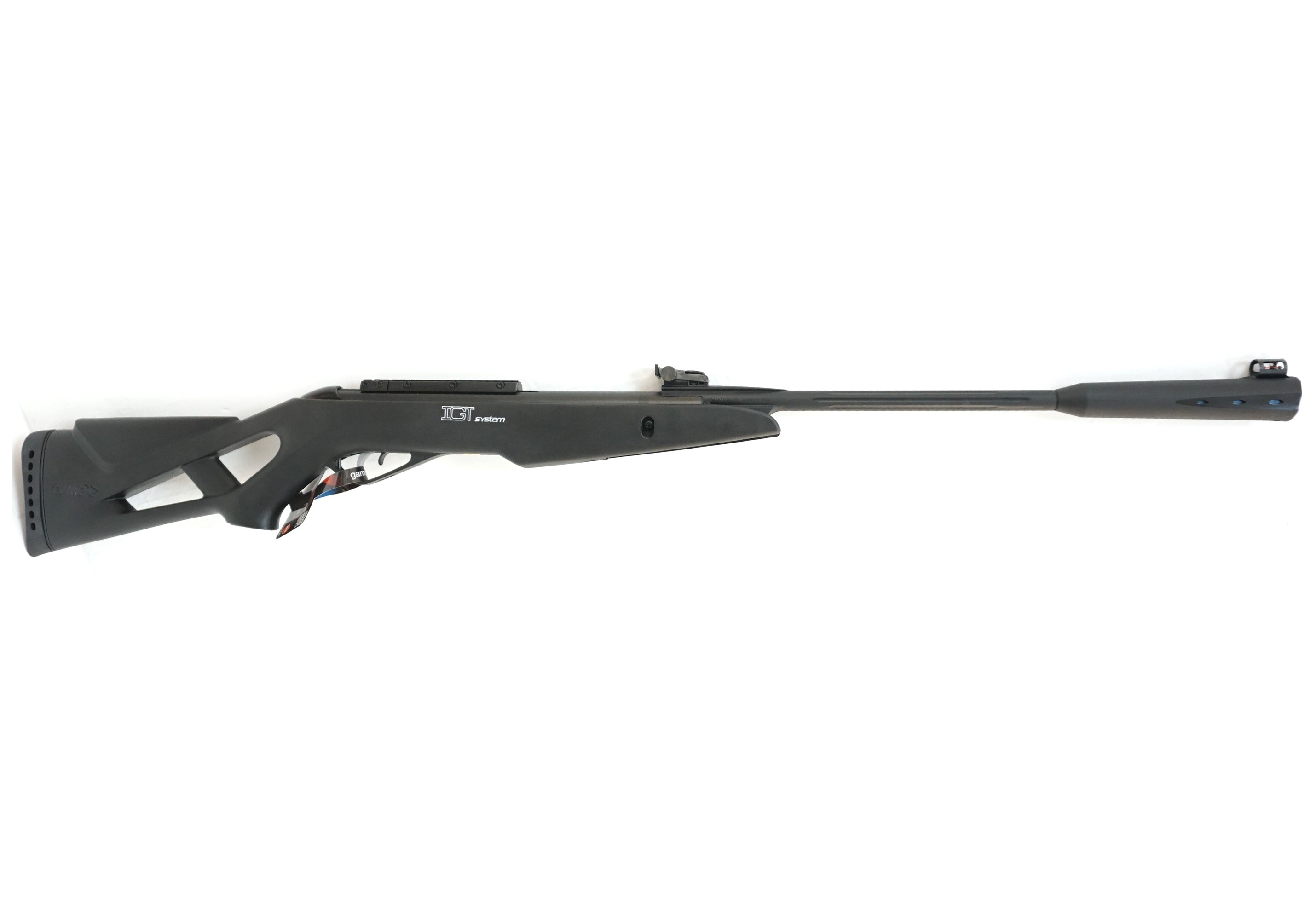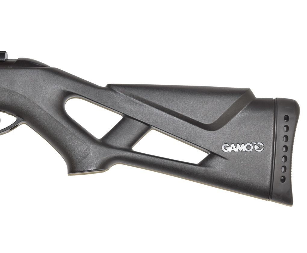 Пневматическая винтовка Gamo Whisper IGT является гордостью испанской компании. Класс оружия - пружинно-поршневой. Конструкция имеет специальную боевую газовую пружину, технологическая разработка которой стала достижением в мире пневматики. Нужно поблагодарить инженеров фирмы, так как изобретение IGT (газовой пружины) является настоящей новаторской разработкой, которой активно пользуются современные производители по всему миру. Устройство работает таким образом, что вместо классической пружины применяется металлический цилиндр, сжимающий инертный газ. Преимущества были настолько очевидными, что множество критиков признали труды разработчиков системы. Изделия "переломного" типа сразу перешли на новый качественный уровень. Пневматическая винтовка Gamo Whisper IGT имеет удобный затыльник, который гасит отдачу, а также компенсирующим глушителем, способным уменьшать вибрацию ствола и приглушающим звучание выстрела. Дизайн модели Whisper IGT отличается агрессивностью. Приклад выполнен из композитных материалов и имеет вырезы для удобства руки стрелка. Подщечник типа "Монтекарло" создает условия для комфортного прицеливания и стрельбы как для левши так и для правши. Оружие приводится в готовность при помощи "переломки", выталкивая свинец на скорости 305 метров за секунду. Ствол нарезной и выполнен из вороненой стали. Мягкость спускового крючка может быть настроена владельцем.