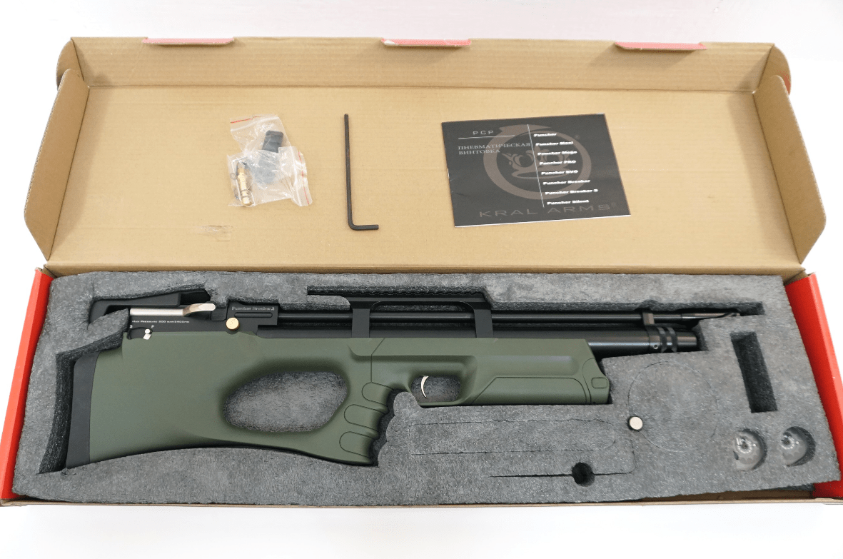 Без усиления, со штатной иглой скорость выстрела составляет 120 м/с, после усиления – до 330 м/с. Модель имеет приклад типа «булл-пап» укороченной длины, что не сказывается негативно на точности стрельбы. Ортопедическая форма приклада и ультрамягкий амортизирующий затыльник сводят отдачу от выстрела до минимума. Величина дульной энергии – менее 3 Дж, купить винтовку Крал Панчер Брекер может каждый желающий. Механизм спуска здесь регулируется, взвод биатлонный. Магазин винтовки барабанного типа, рассчитан на 12 единиц боеприпасов. Стреляет Kral Puncher Breaker стандартными пулями для пневматики увеличенного калибра 5,5 мм.